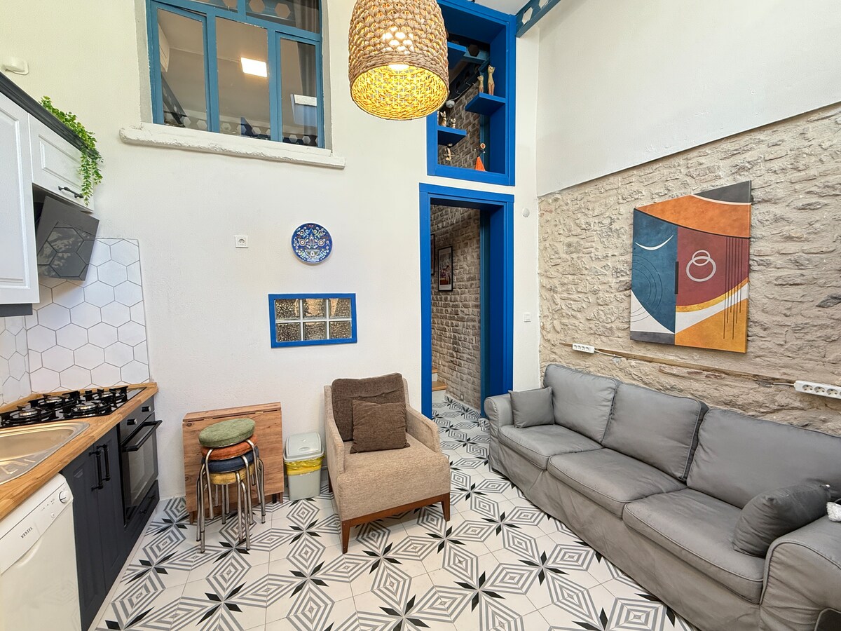 前往Konak中心和Kemeraltı Bazaar非常方便。(步行10分鐘) Loft空間客廳。 24小時安全的社區。 高品質的暖氣和冷氣。 2間浴室 帶Netflix和YouTube的智能電視。