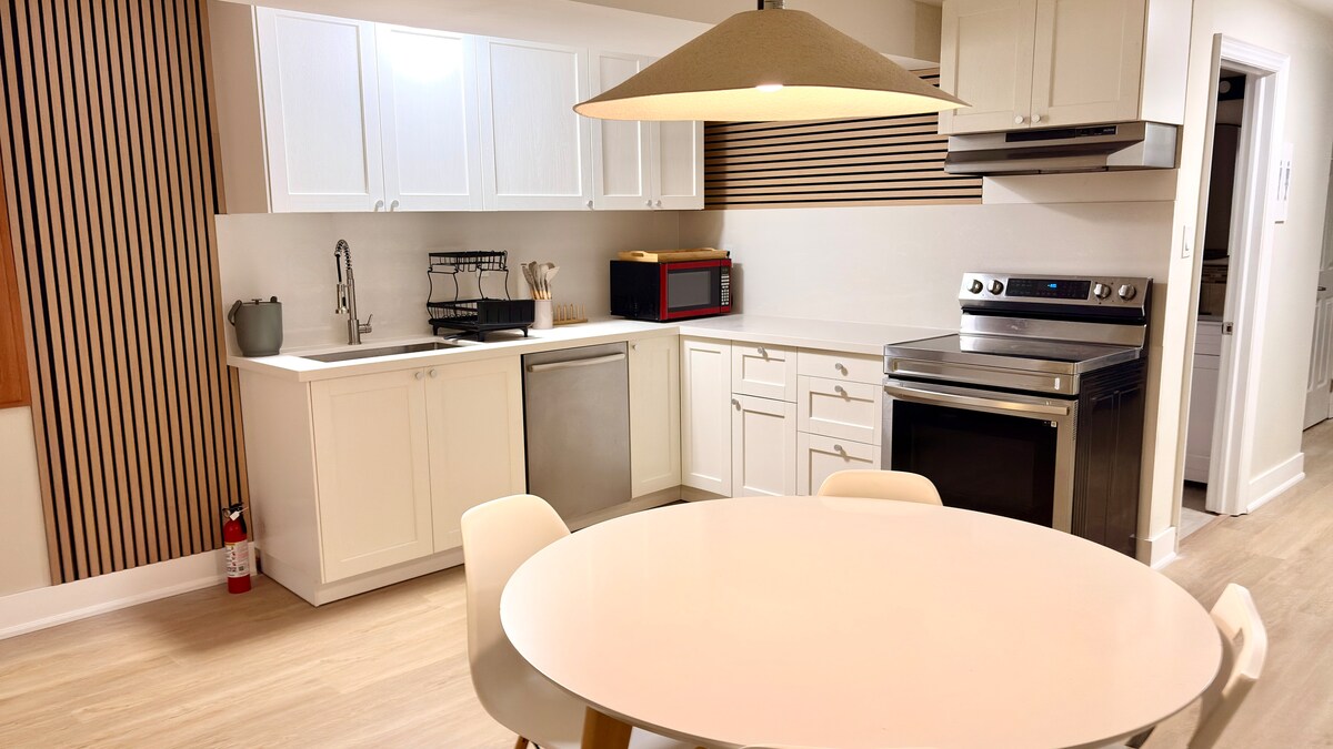 Enjoy a stylish experience at this centrally located get away. Close to shopping, restaurants and entertainment. Come and enjoy this 1 bedroom lower level unit with your own private entrance and parking for 1 vehicle. Equipped with internet, smart tv, full kitchen, full bathroom, laundry and sofa bed that will comfortably sleep two. For the travelling professional a functional workspace is available and monthly stays include bi-weekly cleaning services.