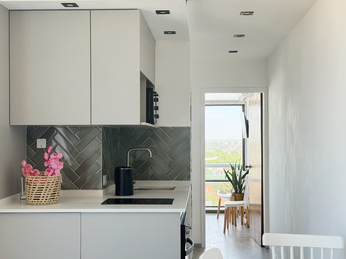 這間公寓是為了俯瞰大海而設計的。 明亮、簡單、實用,從每個角落都能欣賞到開放式景觀。 它位於高處,面向Miramar海岸,提供安靜舒適的氛圍。 這個空間配備了整合式廚房、洗衣機、餐廳、雙人臥室和單人床、全套浴室和大窗戶,整天都能讓公寓充滿自然光。