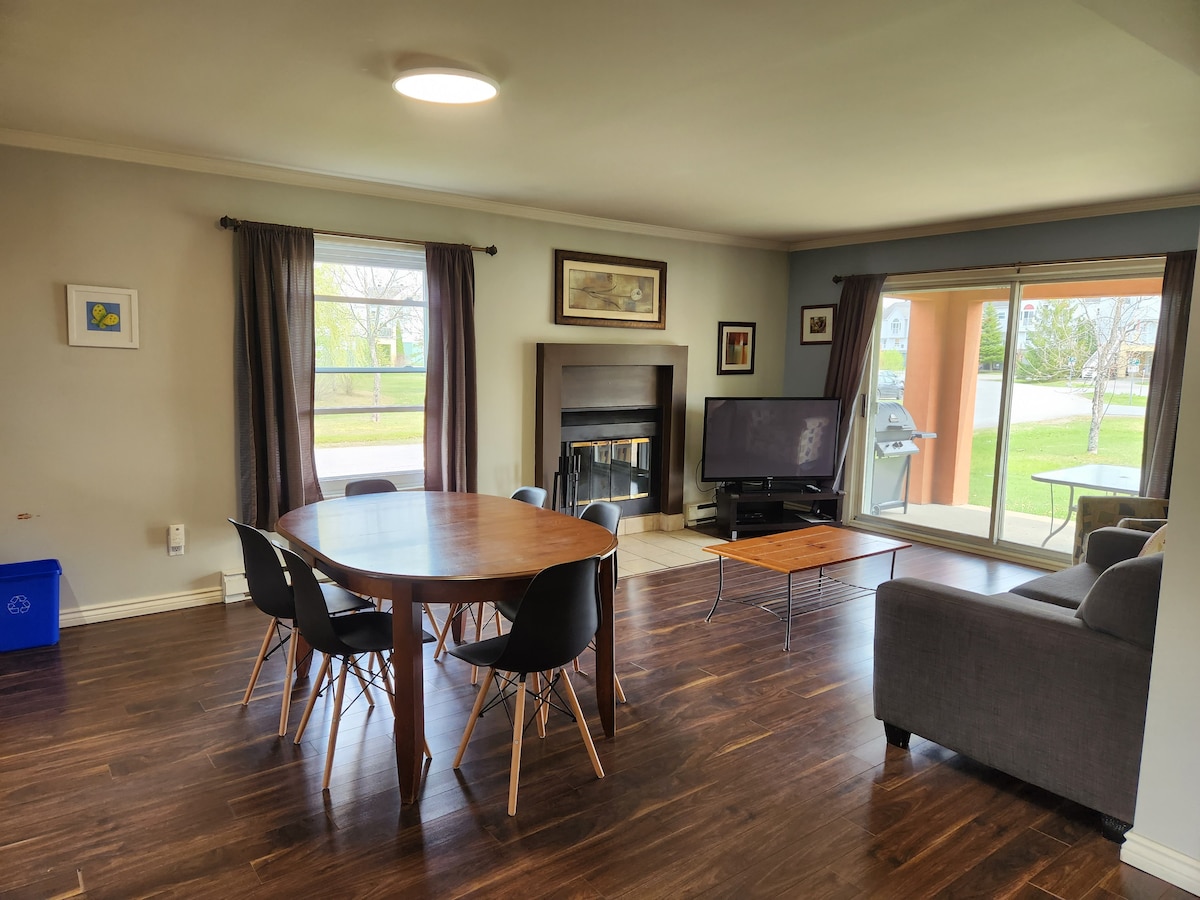 角落公寓。一間臥室在一樓,另一間在樓上,2間全浴室。冷氣。 附近有哪些好去處: -鄉鎮海灘、Memphremagog湖,步行即可抵達小徑 -單車徑,Route Verte 1 -奧福德山(Mont Orford) -奧福德山國家公園 -馬戈格市中心 -北歐站水療中心和波爾頓水療中心 -Rivière Aux Cerises -Terrains de Golf -Epicerie ,餐廳 - Bleu Lavande -Le Cep d 'Argent vineyard 魁北克旅遊業公司(Corporation de l'Industrie Touristique du Québec),機構編號:300504