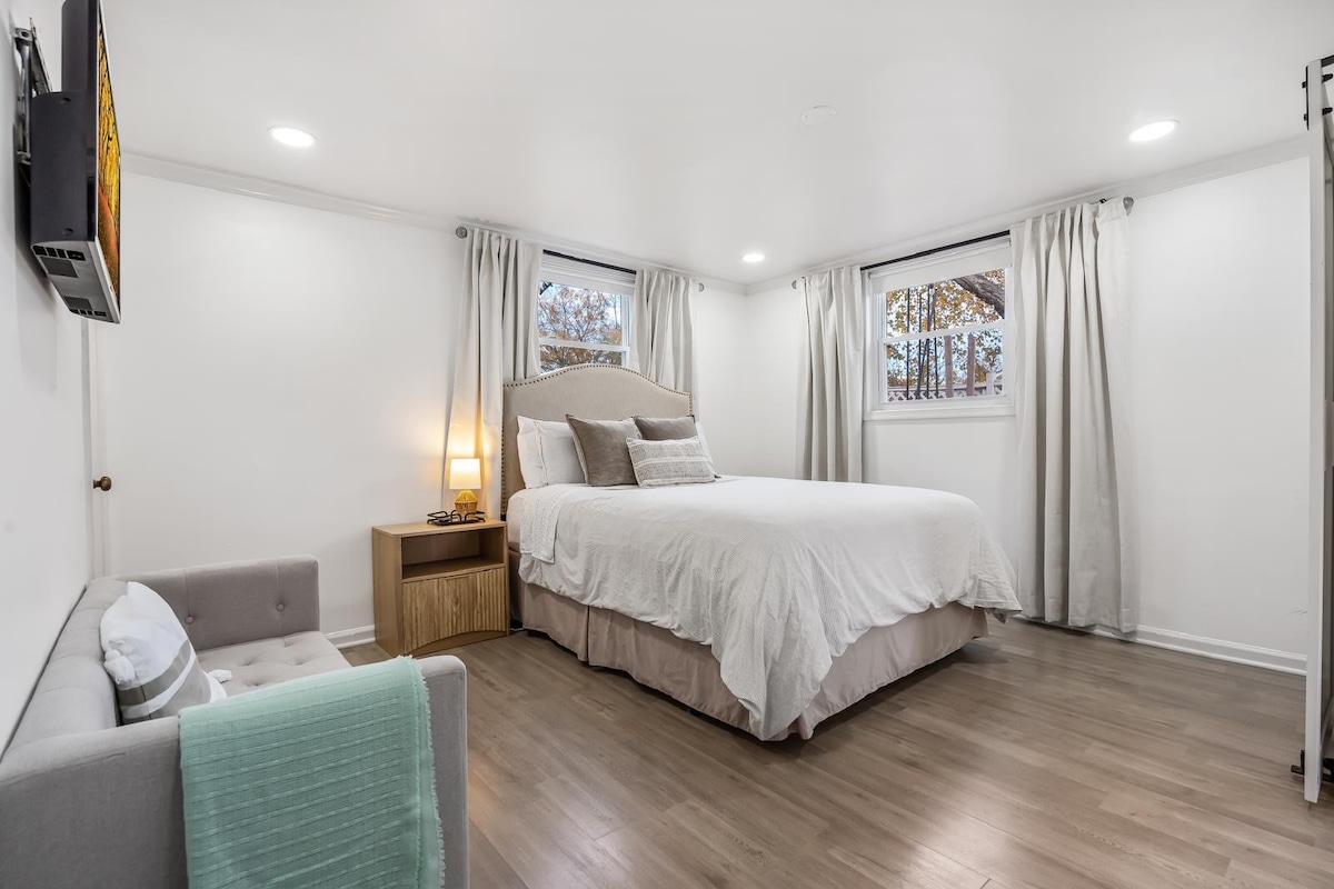 歡迎來到位於維吉尼亞州伍德布里奇市中心的完美家! 這間1間臥室、1間浴室的公寓坐落在著名的Signal Hill Apartments ,提供極致的舒適、便利和奢華。 無論你是出差還是休閒旅遊,都可以享受你期望的所有舒適體驗,甚至更多。 🛏 房子 踏入現代化、溫馨的空間,各處均設有高級裝飾: 寬敞的大床,配有豪華寢具。