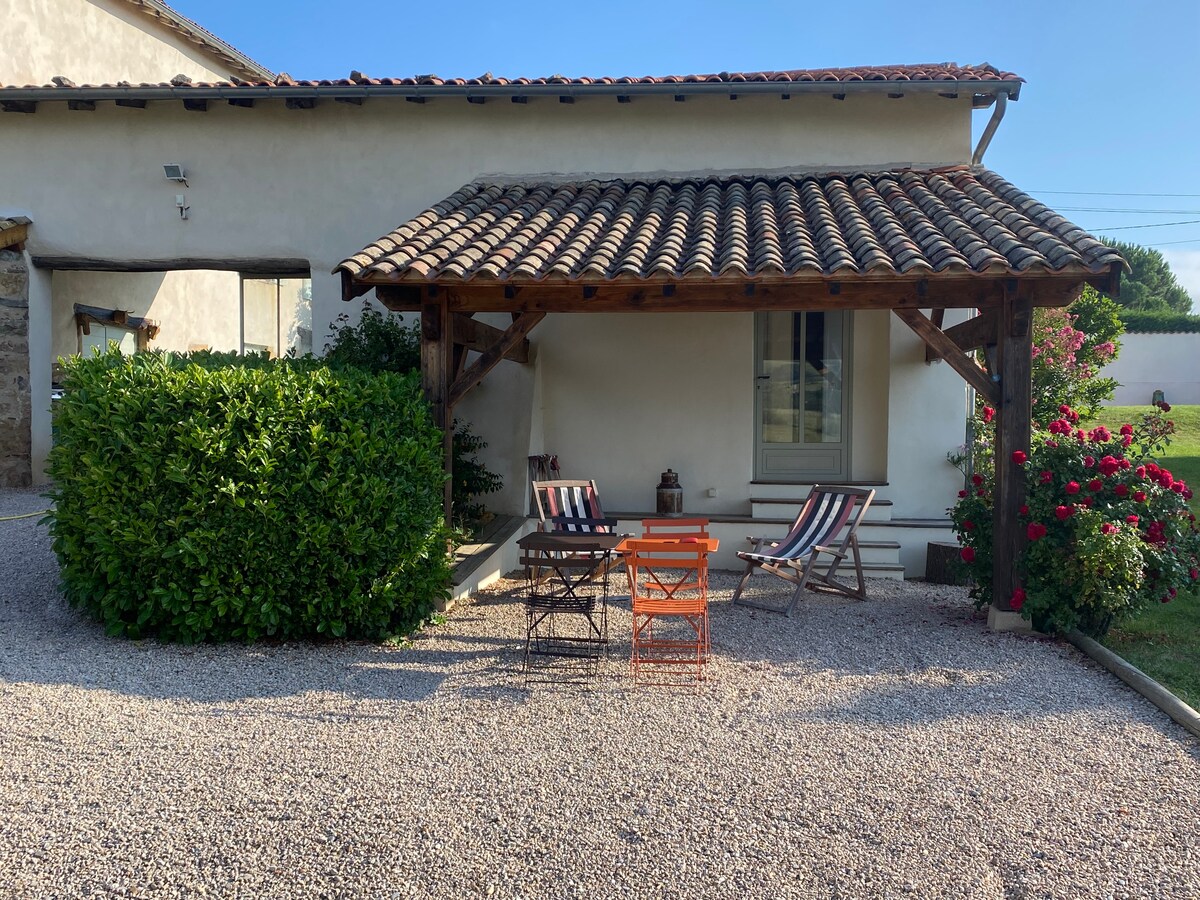 Notre logement est un corps de ferme où nos hôtes pourront profiter d'une grande terrasse donnant sur des prés. Ils pourront se reposer au calme du jardin, tout en restant à proximité de la gare de Lentilly-Charpenay donnant accès au coeur de Lyon en 20min Le logement est situé entre les villages de Marcy l'étoile et Lentilly, très proche de l'école vétérinaire et du parc de Lacroix-Laval.