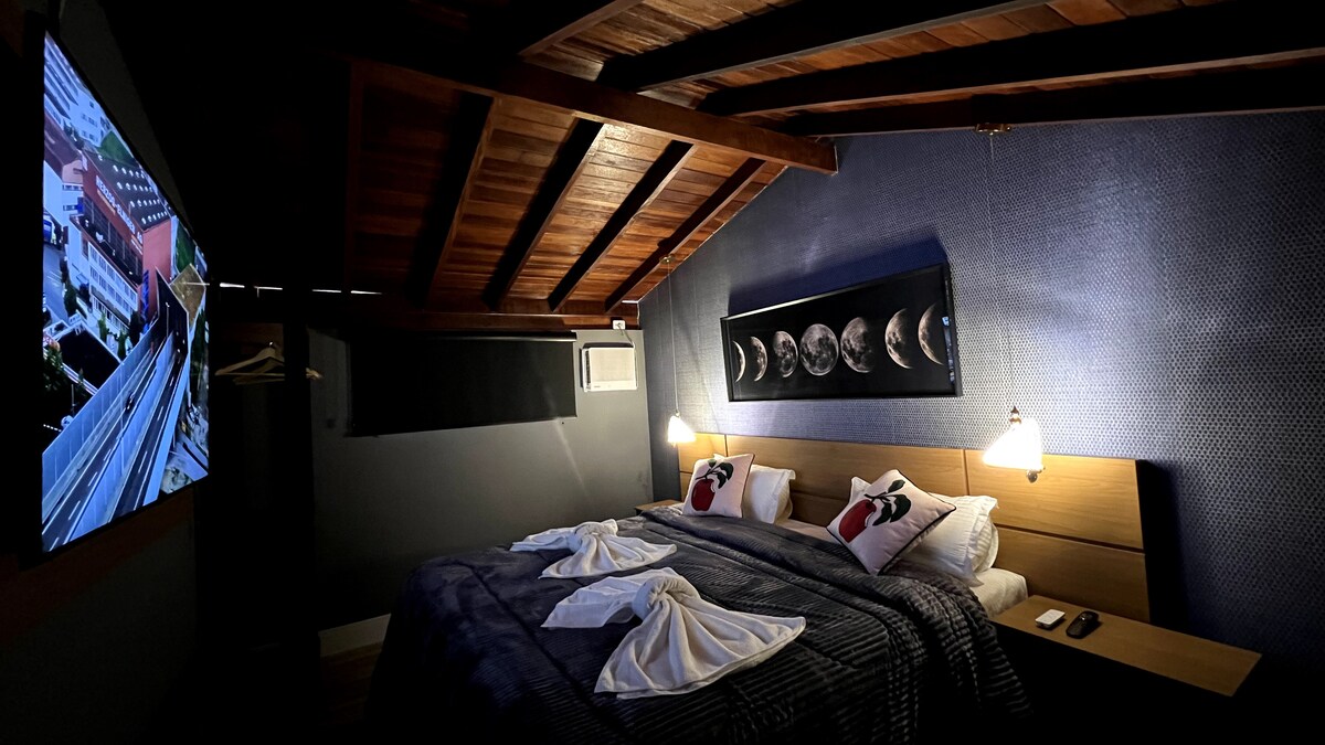 ✨ Suíte La Serena – Exclusiva, Elegante e Aconchegante! Com decoração temática inspirada no nosso hotel, essa suíte duplex é única e pensada para proporcionar uma experiência especial. Acomoda até 4 pessoas com muito conforto. 🛏️ Estrutura da suíte: Cama King Size Bicama de solteiro TV 43” TV 75” Ar-condicionado Frigobar Ideal para quem busca conforto, charme e uma estadia inesquecível no Hotel La Serena.