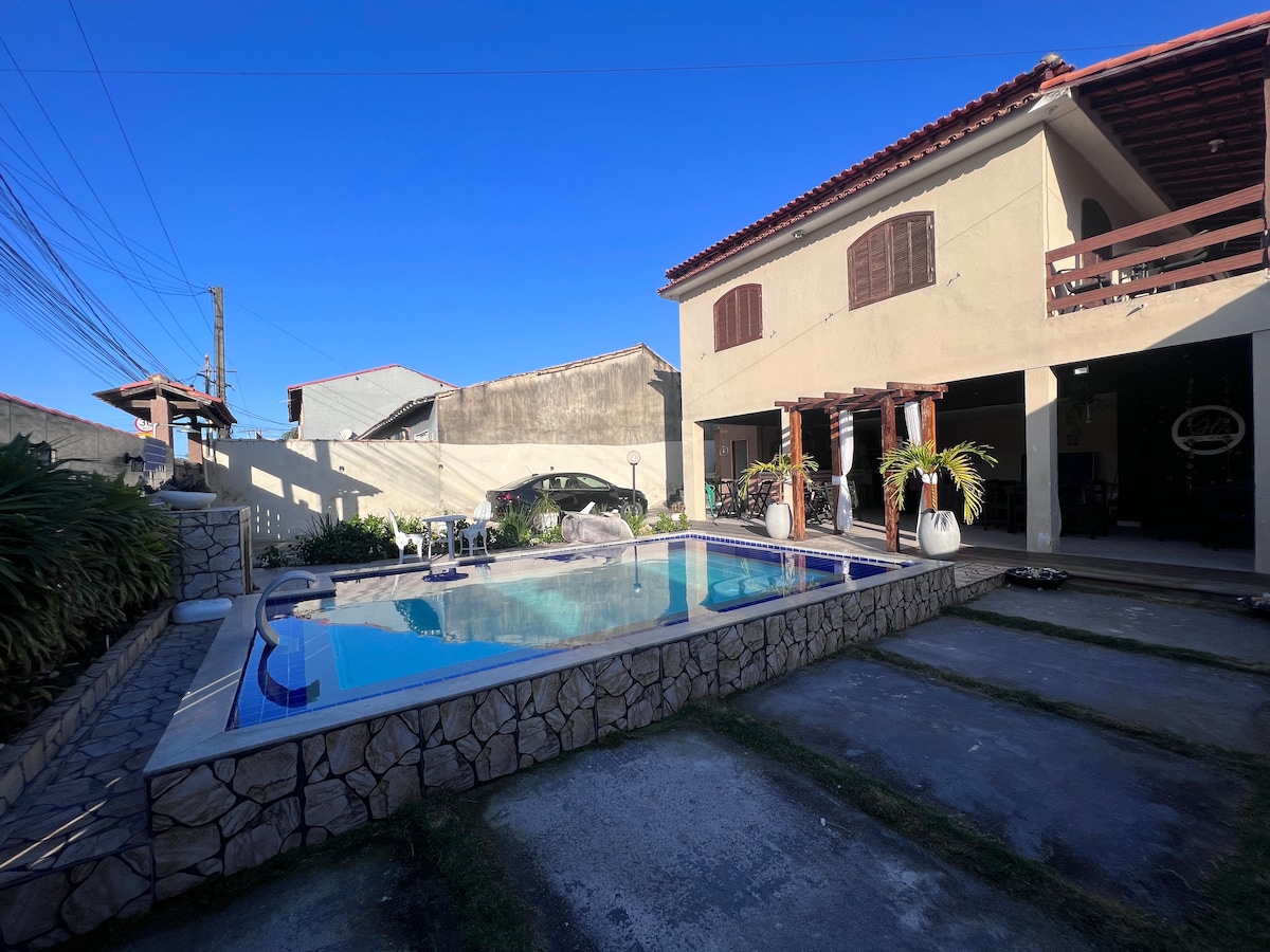 地理位置優越,靠近巴羅克中心、Recanto和Itaipuaçú海灘、音樂廳、酒吧和美食中心。 房子有2間帶空調的套房。 設備齊全的開放式廚房、天花板風扇。 我們接受您的小型寵物, 我們不提供床單、浴巾或個人衛生用品。 不允許訪客。 不允許舉辦派對 室外區域有帶LED燈和瀑布的泳池, 配有冰箱的美食烤肉架。 車庫可停 1 輛車