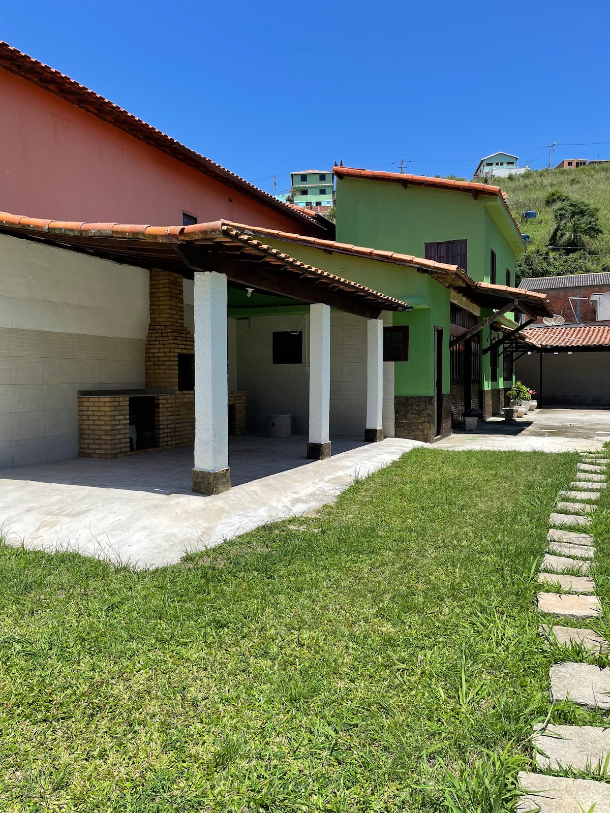 我們的房子距離里約-尼特羅伊橋僅1小時車程,距離海灘僅30公尺,可欣賞壯麗的海景,非常適合那些尋找難忘日子的人,伴隨著海浪的聲音。 房源有 5 間臥室、3 間浴室、私人泳池、燒烤區、燒木爐、設備齊全的廚房、寬敞的客廳、後院、Wi-Fi 和最多可停放 2 輛車的車庫。