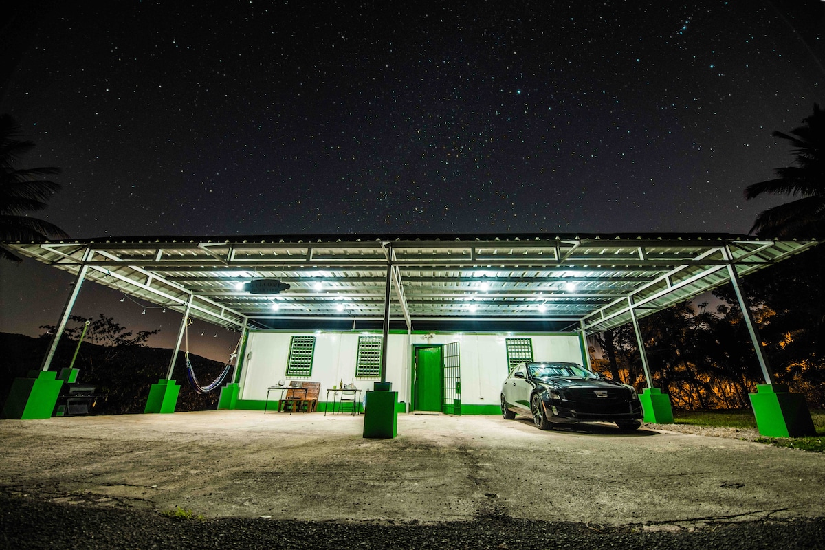 Welcome to Hacienda Iluminada, an exclusive eco retreat located inside a living coffee botanical garden in the mountains of Maricao. This modern, chic cabin is surrounded by coffee trees, roaming animals, and deep mountain serenity. Your private bathroom is assigned exclusively to you and is reached by a short, scenic 3-minute walk through a forest trail — a unique part of the experience. More than storytelling — this is story living.