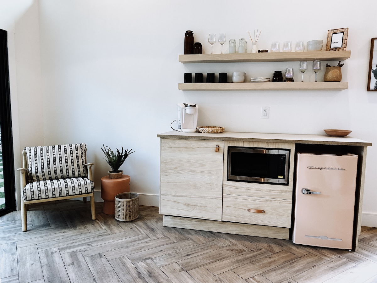 Ray Road Farm的美麗小屋-放鬆身心的完美住處!小屋配備一系列私人設備與服務供您享用;洗衣機和烘乾機、洗碗機、烤肉、戶外烤架、火坑、設備齊全的小廚房和露臺,有很多戶外座位。 坐落在Gilbert市中心,開車5分鐘即可抵達Gilbert市中心、SanTan商場、Agritopia和許多很棒的娛樂場所。 這是最適合放鬆身心的好地方!
