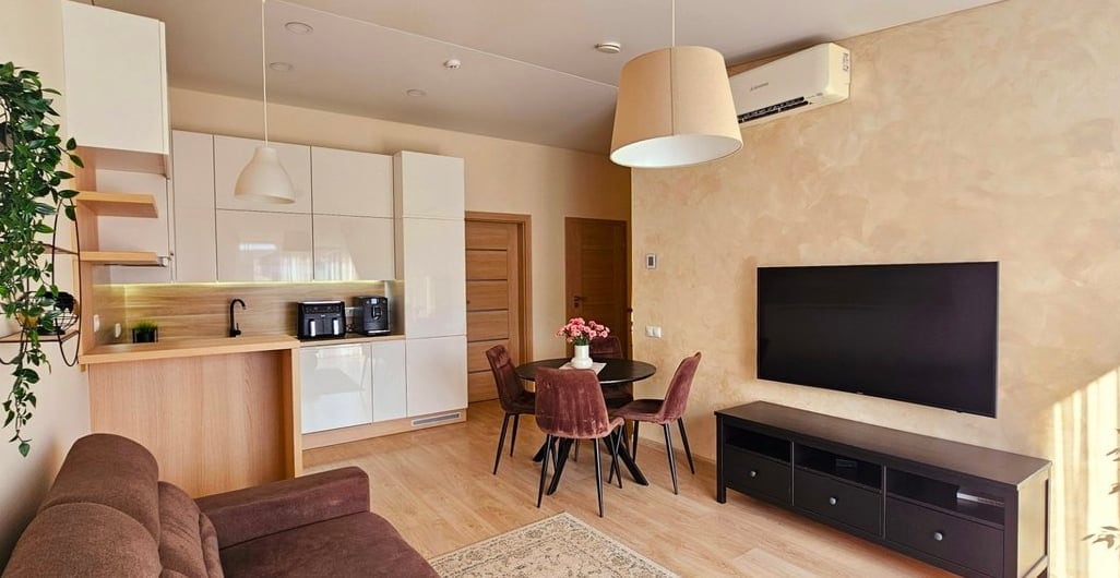 Kviečiame apsistoti jaukiame ir šiltame bute Raudondvaryje – vietoje, kur pasitinka ramybė, o Kauno centras pasiekiamas vos per kelias minutes. Čia rasite dvi patogias miegamąsias erdves, šviesią svetainę su virtuve ir didelį balkoną, kuris tampa puikia vieta rytinei kavai. Raudondvario dvaras bei Neris suteikia galimybę pasimėgauti gamta vos išėjus iš namų. Prie pat buto visada turėsite dvi nemokamas parkavimo vietas. Laukiame Jūsų jaukių viešnagių Raudondvaryje!