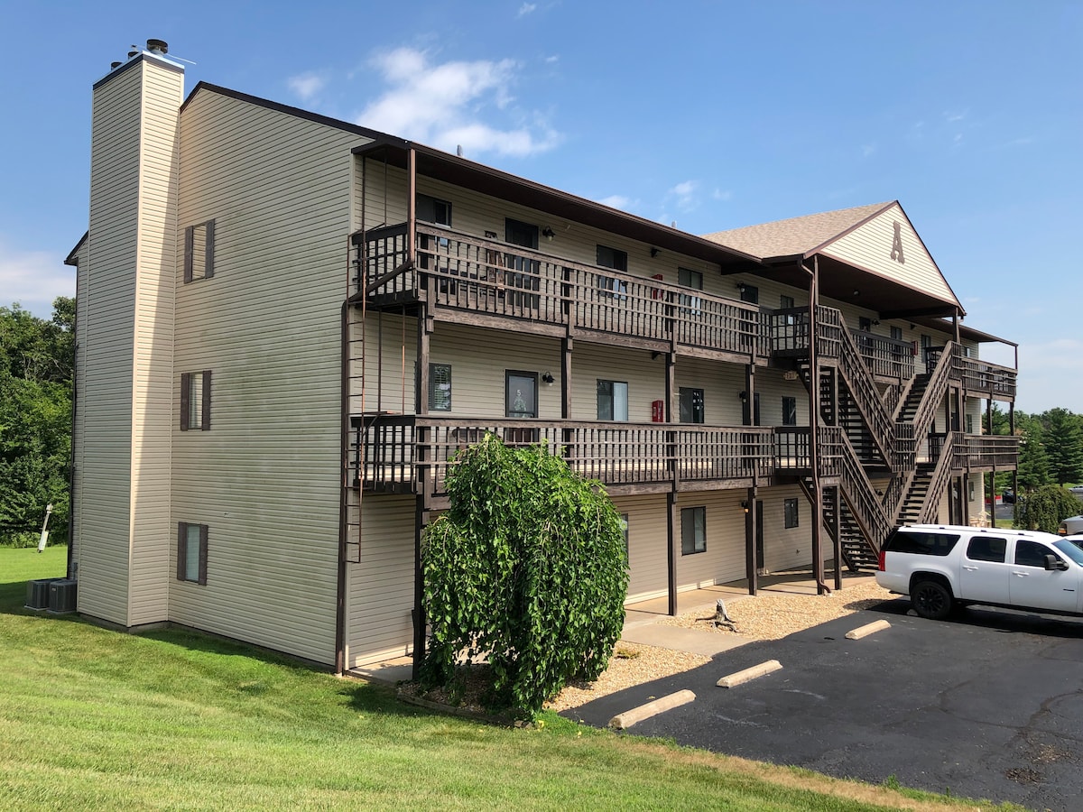 這間獨特的公寓位於主街,距離電影院、餐廳和酒吧、商店、博物館、河邊和Mark Twain歷史景點僅幾步之遙,讓您在漢尼巴爾市中心享受懷舊感。 配有配備平面電視的獨立臥室、配有沙發牀和日光浴牀的起居區域,以及全套廚房,此出租的內部肯定會吸引任何訪客。預訂週末、一週或更長時間的住宿。