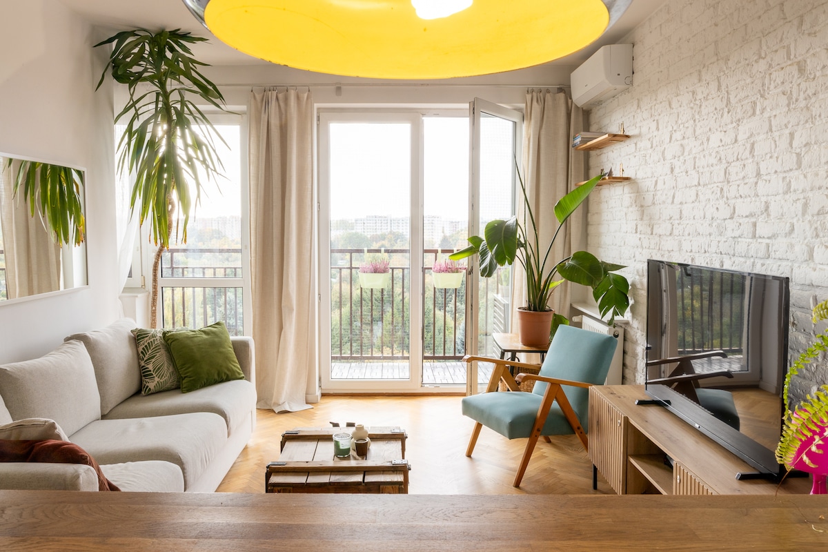 Trocka地鐵站(不到300米)旁邊的現代、美麗的三房公寓,可欣賞華沙的全景。 公寓包括: *客廳配有小廚房(可容納2人); *臥室(雙人床-可延伸) ; *臥室(可供2人入住); *浴室配有座廁和淋浴間; *獨立廁所; *陽臺。 房客可以在優越的地理位置享受寬敞、安靜的公寓。