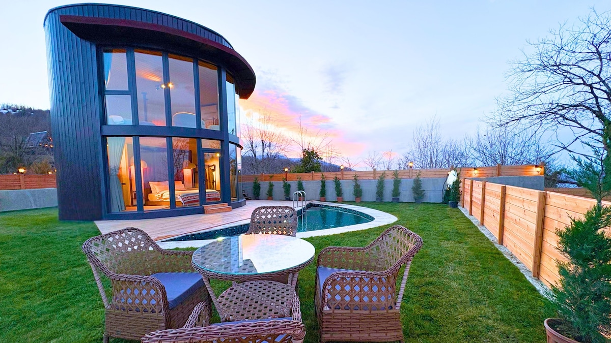 獨一無二的1 +1私人木製度假木屋,配有溫水泳池