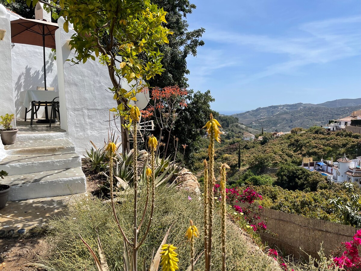 Beautiful Andalusian cottage with sea view from the spacious balcony in a scenic setting in Nerja! The sunny private garden with terrace on the ground floor is a lovely outdoor area to enjoy. Only a 6 minute walk to Burriana beach and restaurants. The accommodation is completely renovated in June. Please note that you have to walk stairs to reach the house and that the house has a spiral staircase to acces the downstairs bedroom from the living room. Free parking available on the street.