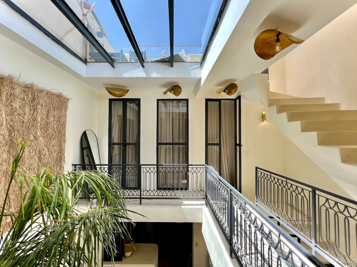 Dar Nurah 是一間時尚的摩洛哥式庭院住宅 (Riad),最多可容納 6 位旅人,尤其適合家庭、朋友或情侶入住,最多可容納 4 位旅人。 整間房屋一律以整套形式出租,因此你將可獨享整間Riad,不會有其他旅人在場。 起居空間總面積約180平方米。 有2間配有套房浴室的精美睡房、配有梳化床的客廳和許多開放式起居區。 在天台露台上,您會看到一個可容納 4 至 6 人的用餐區域。