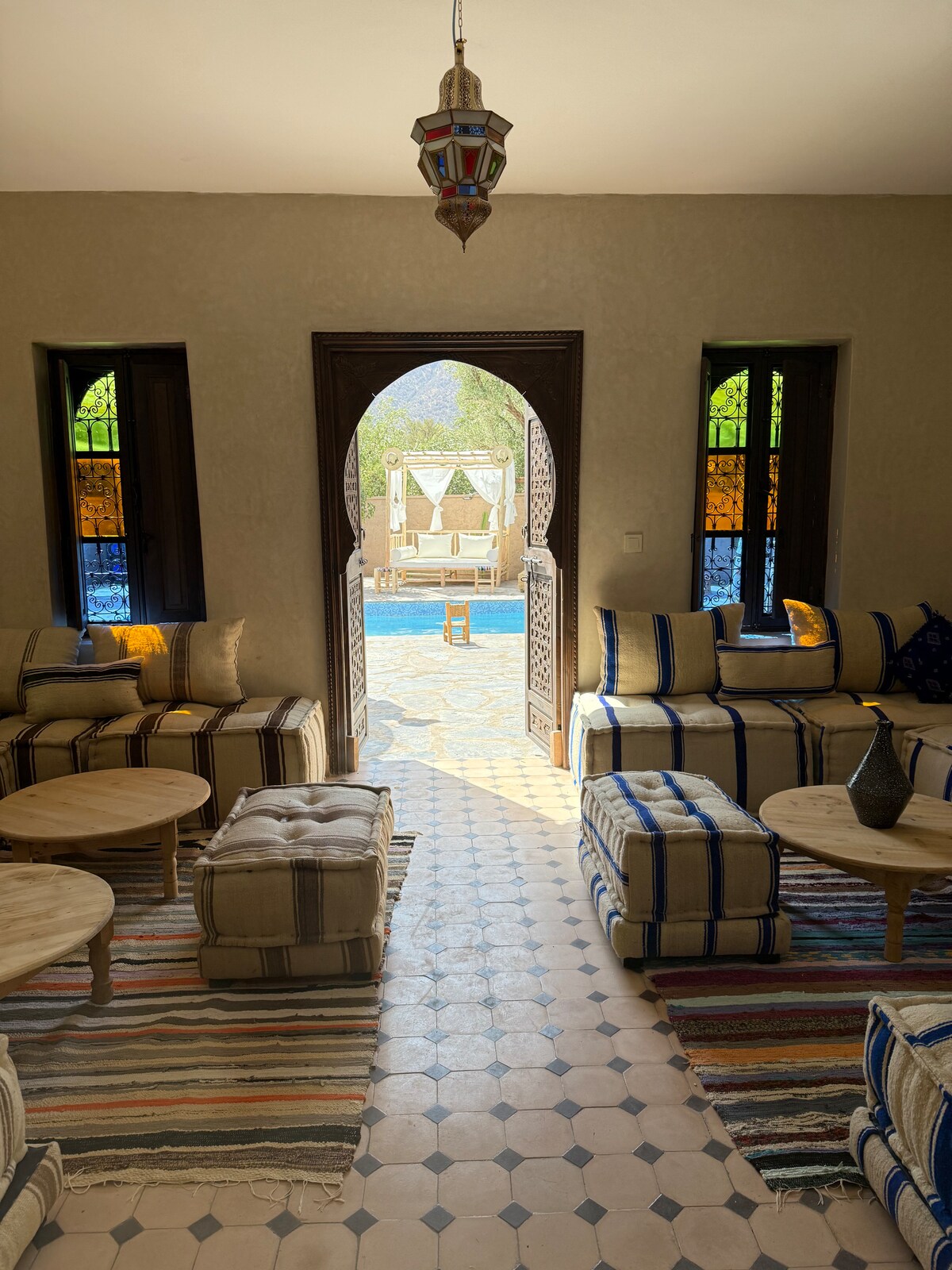 在衝浪屋,我們希望您感到賓至如歸-溫馨整潔。 我們的空間專為您的舒適而設計,具有摩洛哥魅力,我們提供各種房間以滿足您的需求:潛入美麗花園環繞的泳池,或在冒險一天後在我們的放鬆區域放鬆身心。 不要錯過我們的瑜伽露臺,在那裡您可以放鬆身心,欣賞美景,這樣您就可以與朋友保持聯繫,