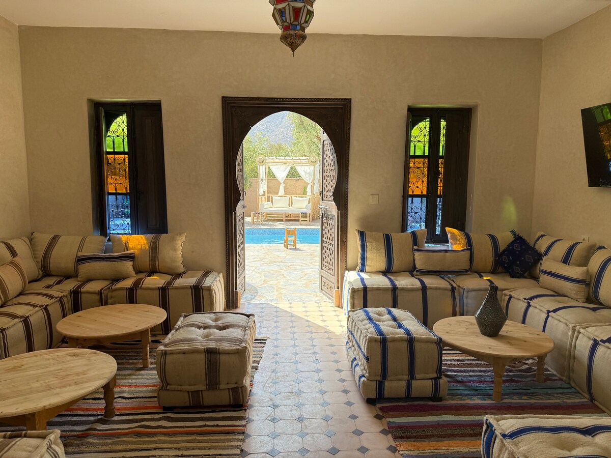 從這個迷人的旅居輕鬆前往熱門商店和餐廳。距離房子1.05公里,距離Oukaimden滑雪度假村30公里。 距離Marigha和Ouirgan 10公里。距離Imlil 15公里。 根據現行法規,未婚的摩洛哥夫婦不被允許。
