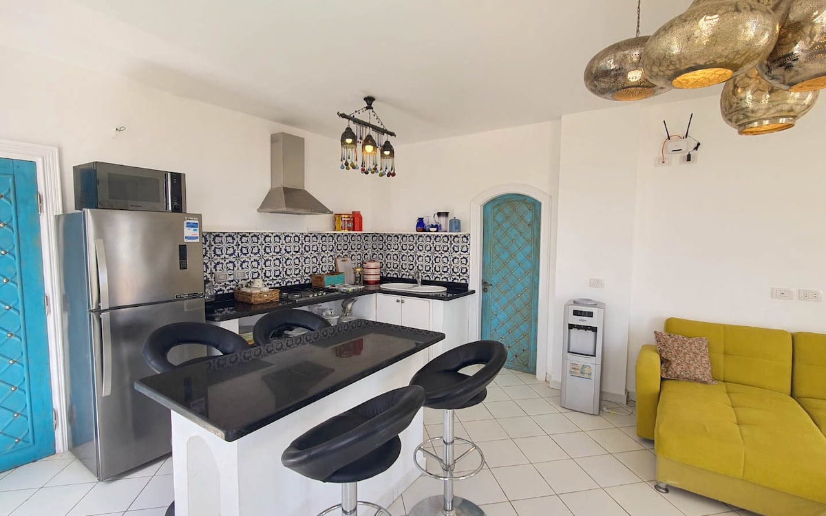 Faites une pause et détendez-vous dans cette oasis paisible. L'appartement est cosy et lumineux. Il est situé dans une résidence calme, face à la mer, avec une piscine et un restaurant sur place. Il possède un agréable balcon ainsi qu'un toit terrasse aménagé. C'est l'endroit idéal pour se reposer, se ressourcer, et accéder facilement aux sites de plongée et de snorkeling locaux. Nous n’acceptons pas les couples mixtes (égyptien/étranger) sans contrat de mariage officiel.