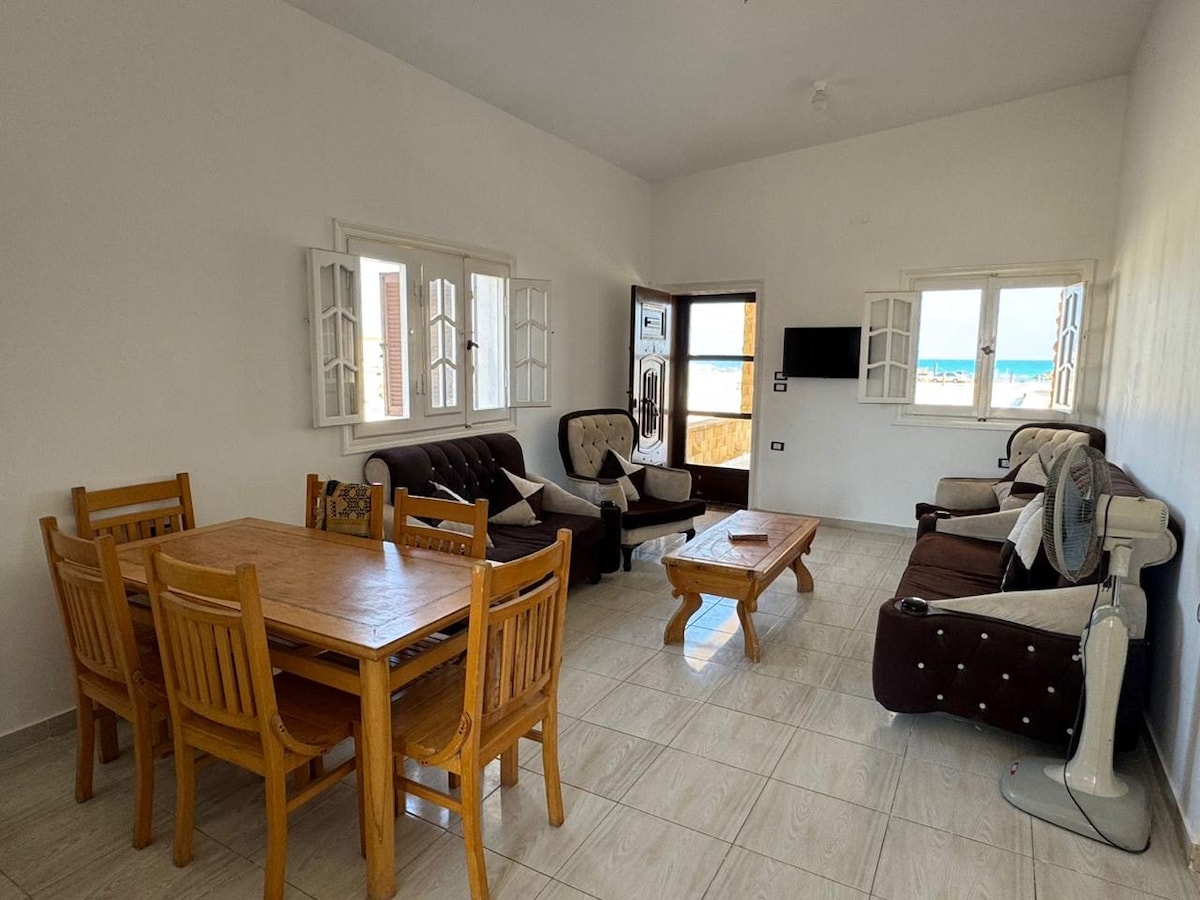 "Escape to your luxurious 3-bedroom haven with direct sea views from every room! Why choose us? Sink into 5 plush beds, whip up meals in a fully equipped kitchen, and explore vibrant local markets just 5 minutes away. Enjoy total privacy in a standalone apartment, far from crowded hotels. ✨ No WiFi? No problem! Disconnect to reconnect with nature’s beauty. Don’t wait—book now and wake up to the most breathtaking sunrises in Marsa Matrouh! 🌅✨"