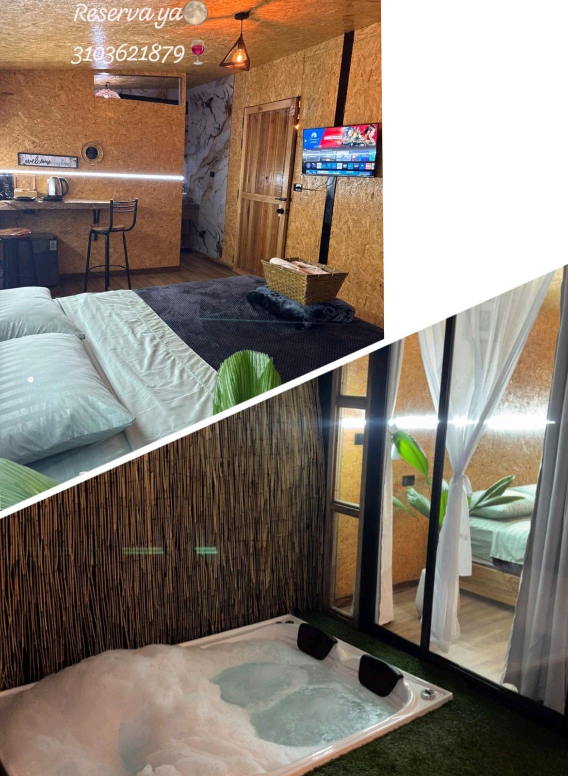 壯觀的小木屋位於Chinchiná市美麗的咖啡山脈,在那裡您可以欣賞大自然的所有聲音,欣賞神奇的日落和日出的最佳景觀,完全的隱私將讓您與跟隨您的特殊人物互動,天然篝火,配有熱水的私人戶外按摩浴缸,以及由竹子製成的戶外淋浴間,以及許多可供享受的空間,將使這次體驗令人難忘。