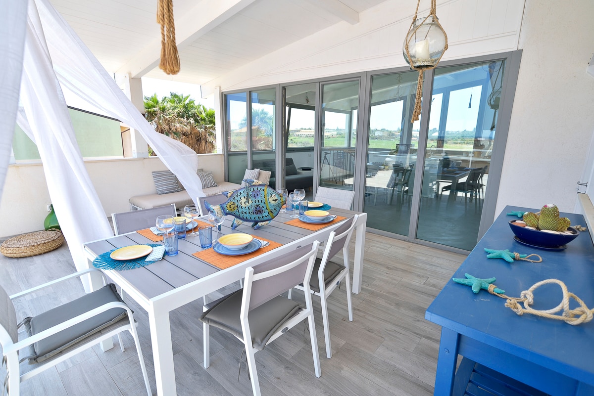 「羅莎迪文蒂別墅」(Villa Rosa dei Venti) 距離古老的海濱村莊馬爾扎梅米 (Marzamemi) 只有 500 公尺。房子由一間帶有套房浴室的雙人臥室和一間帶有相鄰浴室的第二間雙人臥室組成。一扇大型落地窗讓自然光線充滿整個寬敞的廚房/客廳,客廳內有一張雙人沙發床和一個美麗的壁爐,適合冬季入住;此外,房子還提供兩個露台,一個在室內,另一個在室外,面積約30平方米,距離海岸線僅2公尺。