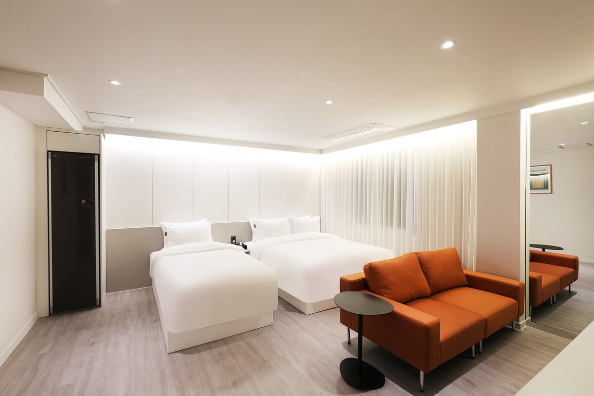 靠近金海國際機場、釜山市中心和城外(巨濟、昌原、鎮海等),因此對於國內和國際旅客來說都很方便。 房間採用現代風格,並配有Simmons床墊,讓您舒適入睡。 公共空間提供免費洗衣服務、微波爐、製冰機、淨水器等。 附近的旅遊景點包括多大浦海灘、乙束島遷徙鳥公園和釜山當代藝術博物館。 **早餐須另行購買。
