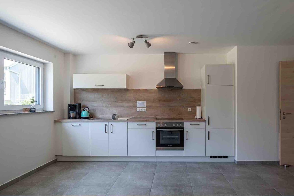 「帶露臺的舒適度假公寓」 我們精心佈置的新度假公寓 有一間臥室和一張沙發床(在客廳和廚房區域)、設備齊全的廚房和一間舒適的浴房,距離火車站約10分鐘步行路程,距離市中心約 15-20 分鐘步行路程,位於比伯拉赫 (Biberach) 的「塔爾費爾德 (Talfeld)」區。 步行2分鐘即可抵達一家EDEKA超市,內有麵包店。