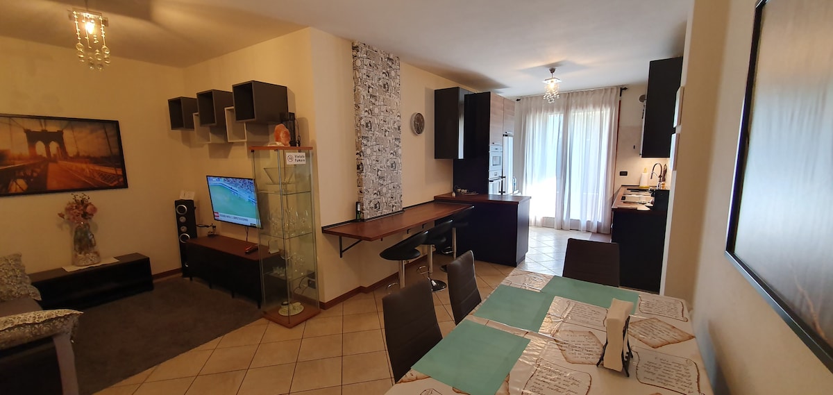 Nice apartment with air conditioning, washing machine and some outside space. 100 metres from a bus stop and a shop selling fresh fruit and vegetables and everyday groceries. If you are interested in local food and wines, we can give you some advice on nearby shops and farms. Larger supermarket open 7/7 less than 10 mins away (on foot). The town's castle (on the Prosecco Hills) is a 20 mins walk away. We live close by, we speak Italian but out sons help us welcome foreign guests.