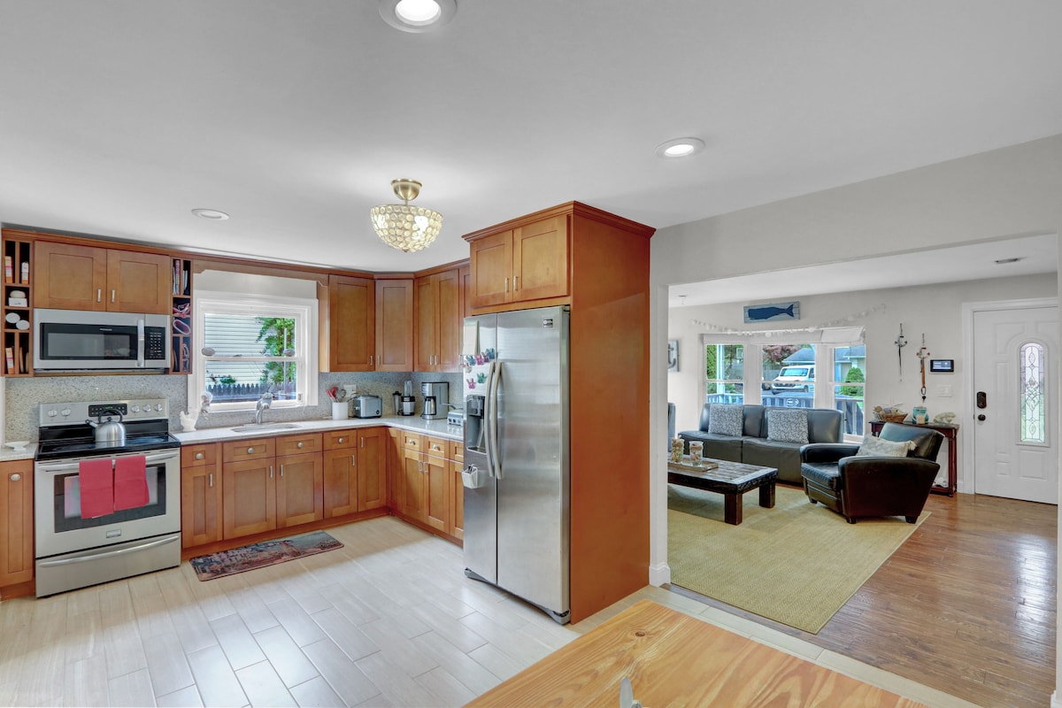 整個團體都可以從這個位於中心的房源享受一切。三間舒適的臥室、兩間浴室、大客廳、餐廳和廚房。靠近海灘、自然保護區、皮划艇、跳傘和Tanger outlet商場、餐廳和附近的所有快餐店。長島有各種酒莊和農場等。房客應遵守《房屋守則》。退房時間後15分鐘,將按每晚價格收取費用