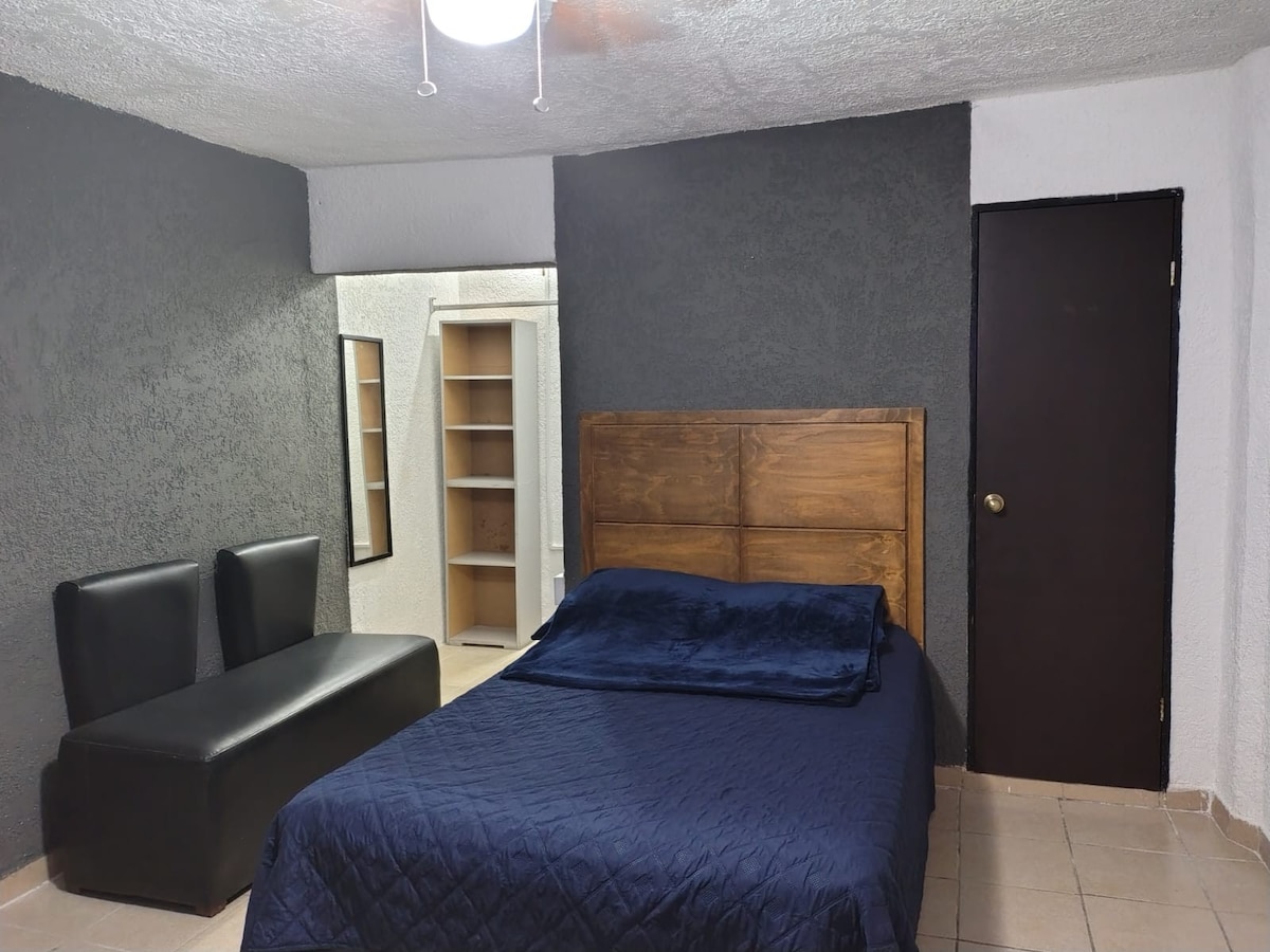這個公寓位於 Quinta Real 區,就在 Patio Sendero 商場後面,您可以在那裡找到 Soriana、Cinépolis、Smart 24 小時、Del Sol、Coppel、Burger King、Pizza Little Ceasers 等商店。它有 2 層樓,樓下有一個設備齊全的廚房,樓上有 3 張床、2 張雙人床和 1 張帶 2 張單人床墊的袋鼠床。樓上有浴室和淋浴間。樓下有一個帶花園的庭院。