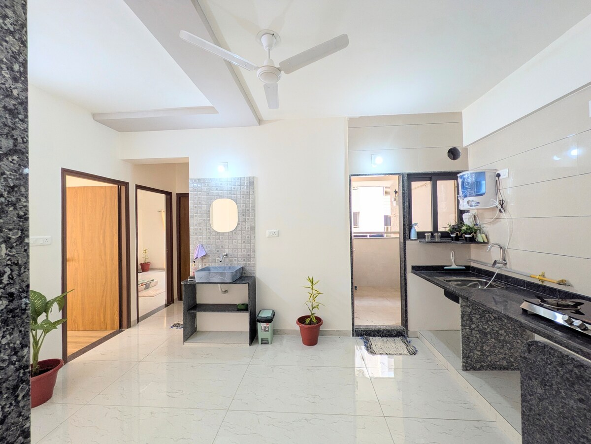 歡迎來到文化遺產城市-艾哈邁達巴德。位於Nehrunagar Ambawadi的全新現代寬敞家庭公寓,公寓面積640平方英尺, 60平方公尺 -主臥室配有加大雙人床、衣櫃、附帶浴缸、熱水淋浴(臥室尺寸13英尺X 12英尺) -第二間臥室,配有兩張單人床、衣櫃和附屬浴室 -另一間配有小廚房的客廳(尺寸:15英尺X 11英尺) - IKEA 家具、免費 WiFi、空調、電梯、瓶裝飲用水 抱歉:禁止吸煙、禁止攜帶寵物(洗衣服務收費)