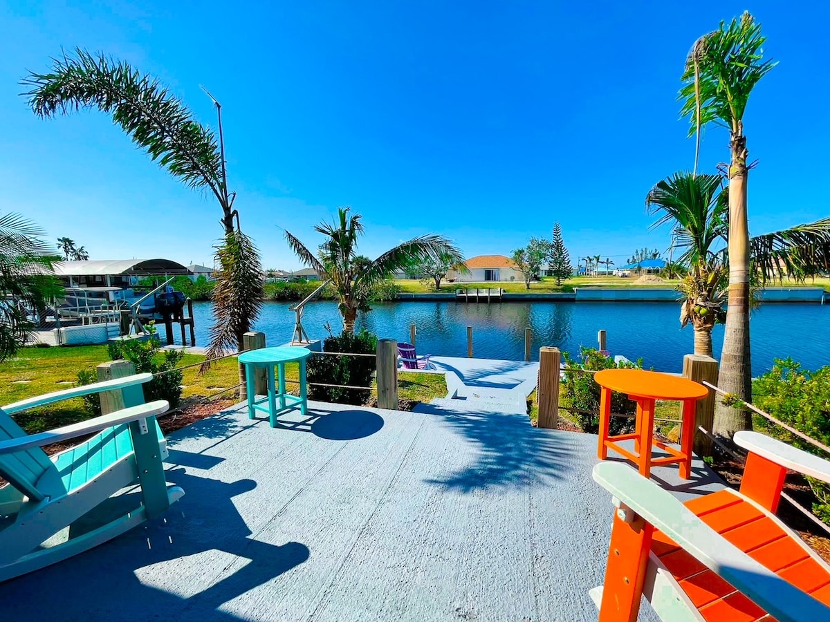 可愛的海濱海灣通道房源在SW Cape Coral等著您。3間獨立臥室和2間全功能浴室將確保每個人都感到舒適。 陽台和螢幕覆蓋的溫水泳池會讓您在溫暖的佛羅里達州陽光下保持涼爽,同時防止蟲子進入。房子設備齊全,配有新翻修的廚房和新的碼頭,配有提基小屋。 靠近娛樂設施:許多酒吧、餐廳和海灘。