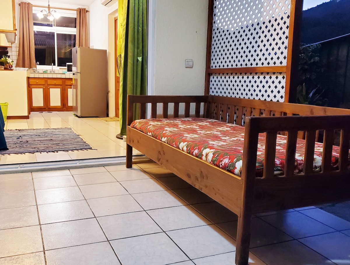 我們在Raiatea的平房非常適合情侶和獨自冒險者。 放鬆的私人平房,步行15分鐘即可抵達城鎮、碼頭和醫院。 獨立入口和停車位。 非常適合在忙碌的一天探索Raiatea的自然美景後恢復。 平房寬敞,最多可容納1-2位房客。禁止吸煙。 與友善的狗共用花園。 附近的健行步道,可欣賞美景。 步行10分鐘即可抵達天然海洋泳池,可供遊泳/浮潛。