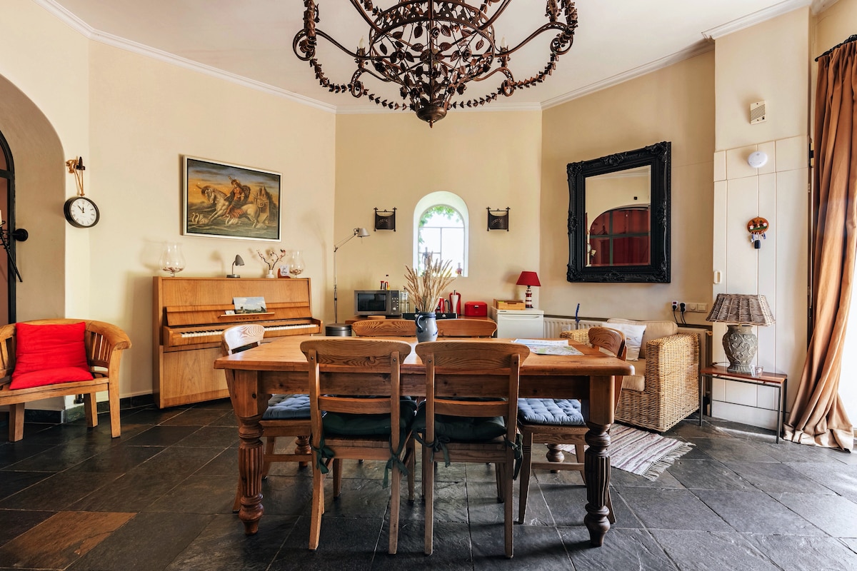 我們美麗的度假屋位於 Amerongen 城堡附近的老村莊。非常適合徒步旅行者、自行車手、摩托車手和山地自行車手!這是一個獨立的小屋,採用附近的煙草倉庫風格,有自己的入口、舒適的床、廚房、帶花灑的豪華新浴室和有氛圍的陽臺(帶木製壁爐!),並可欣賞我們後院的綠色景觀。超級私密。在吊床上放鬆,或爬到靠近燃木壁爐的搖椅上。 提供:Wi-Fi