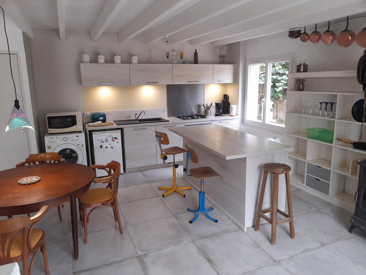 翻新的老房子,有 2 間臥室和一個大客廳、洗碗機、烤箱、微波爐、水壺、Tassimo 咖啡機、烤麵包機。可欣賞鄉村和馬匹的景觀。高速光纖網路,適合遠距工作。 可供 1 人或 5 人舒適入住,並有一張可供 2 人使用的沙發床。 距離雷恩展覽中心、機場不到 5 分鐘,距離雷恩 10 分鐘。距離 Cicé Blossac 或 St Jacques de La Lande 高爾夫球場僅幾分鐘路程。位於布魯茲和戈文之間。可從 4 號公路輕鬆快速抵達。