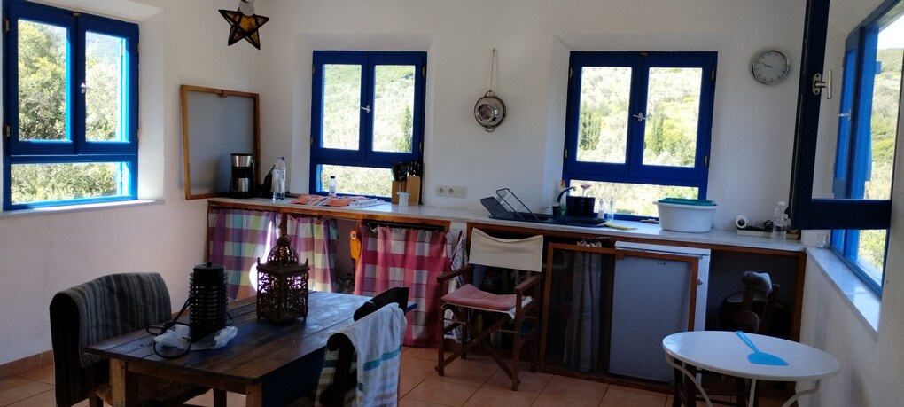 Daria's home exclusive design perfectly blends with its surroundings and is built on a plot of land that feels secluded and sheltered by the nature. The 85m2 house boasts a large veranda with stunning sea views and a cozy and shady back yard. Large window openings gives the feeling of “touching” the eternal sea blue from most areas of the house. The house is professionally and beautifully built, furnished and equiped. Just 3 minutes walk from the amazing Agii Saranta beach.