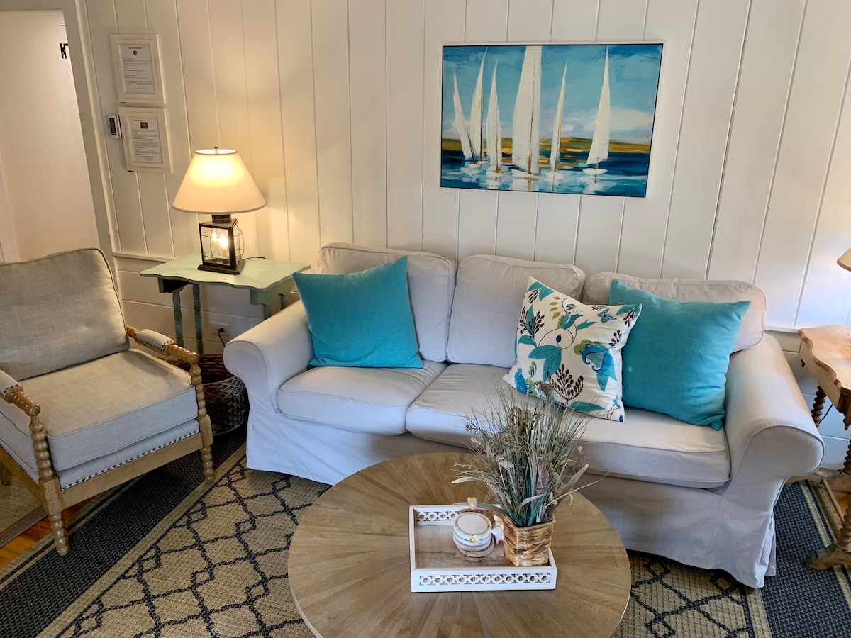 歡迎來到The Boat House! 這間私人套房坐落在我們一英畝房源的魅力中,享有寧靜的環境。 這間航海主題度假屋提供寬敞而舒適的套房,配有私人獨家入口,配有標準雙人床、客廳和用餐區域、設備齊全的小廚房和全套浴室。 瓦斯爐為夜晚增添舒適的氛圍,房客還可以欣賞美麗的後院和鯉魚池。