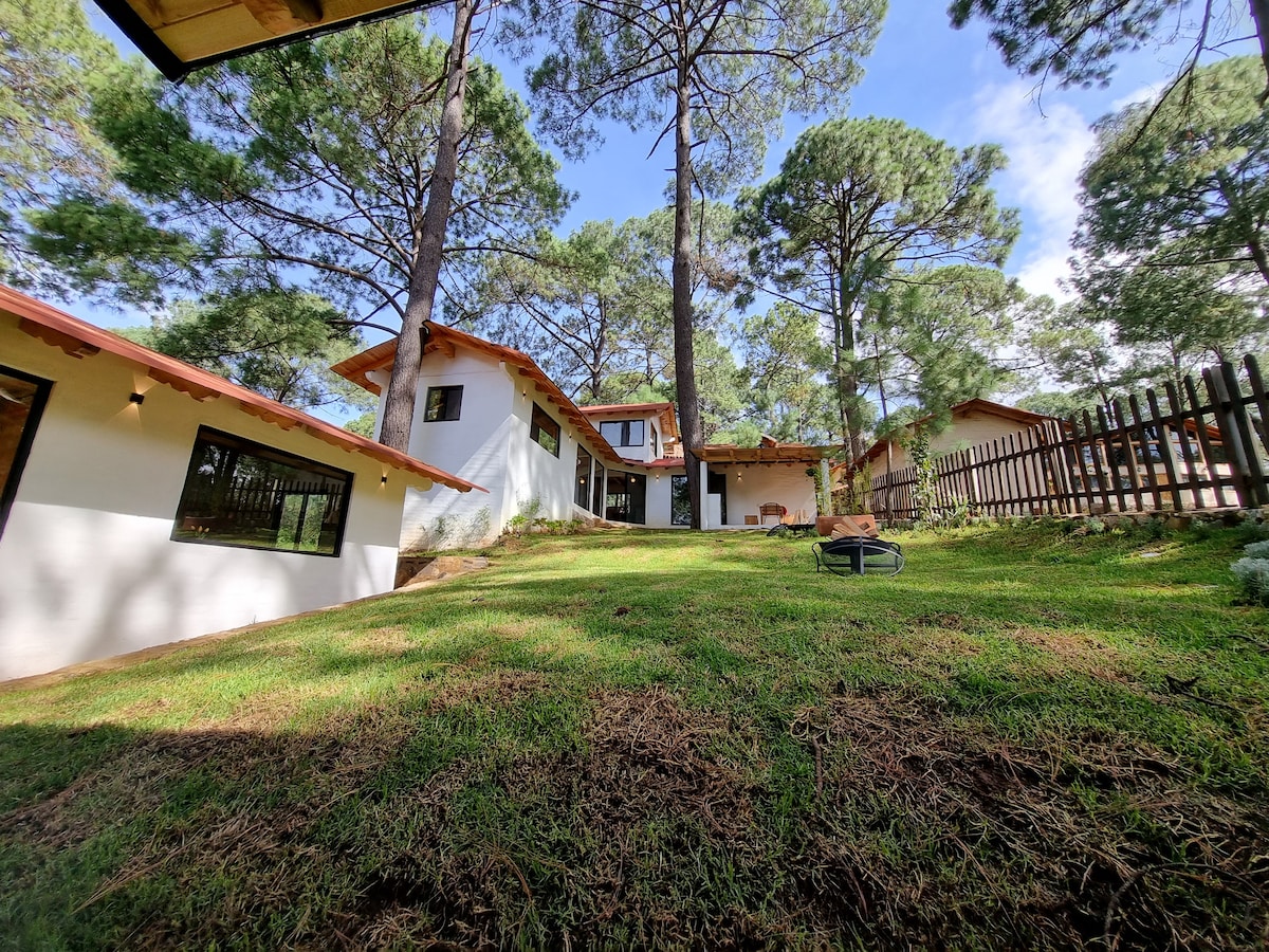 森林中的小木屋,可容納16人。 我們尋求在真正的木製小木屋中提供幾天的家庭體驗的空間,擁有鄉村裝飾和奢華細節,不會失去您在度假時想要的舒適和舒適感,所有這些都伴隨著木頭的特色氣味和森林景觀 我們的小木屋將為這些下雨和/或寒冷的夜晚提供粘土,典型的mazamitla 我們希望成為您度假的一份!
