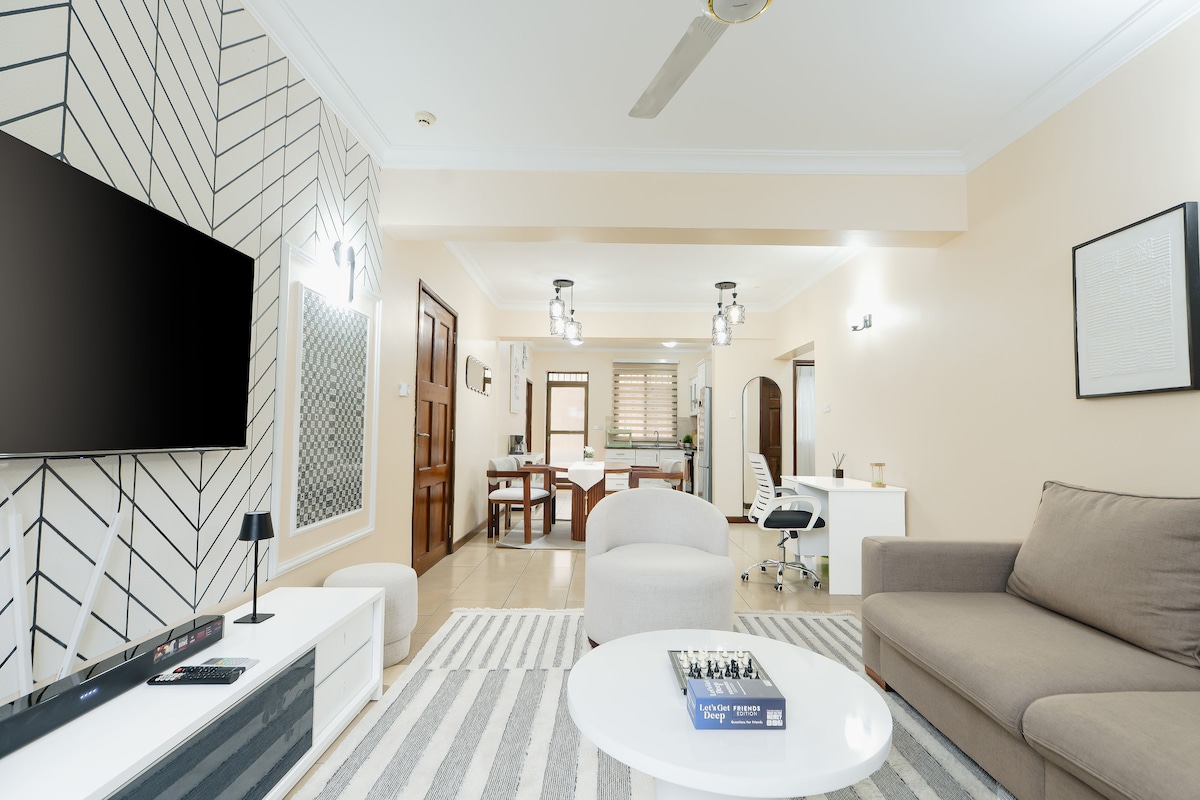 Welcome to your peaceful coastal retreat! This lovely and tastefully decorated space offers simple yet stylish comfort, tucked away in a serene compound for total relaxation. Just a 2-minute walk from Mwai Kibaki Road and a 10-minute stroll to the public beach, it’s perfectly located for both convenience and tranquility. You'll also find shops, restaurants, and other essential amenities just around the corner, making it an ideal stay whether you're here for leisure or business.