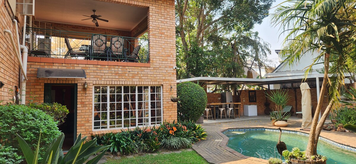 沒有減少負載問題,有備用電源和瓦斯爐。 家具齊全的房子,溫馨的廚房,可俯瞰空調客廳/用餐區域3臥室2全功能衛浴。 主臥室很大,配有空調和套房全功能浴室,可容納兒童的額外牀位。 對於Netflix/ShowMax狂歡者,有無限快速光纖網路和DSTV。 對於戶外愛好者來說,有一個適合兒童入住的花園和泳池。 為長期住宿的房客提供大幅折扣!