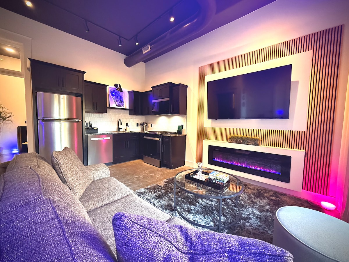 這間豪華的1間臥室1浴室公寓位於帕迪尤卡市中心,就在Grill 211上方。 這間迷人、經過全面翻修的公寓提供寬敞舒適的客廳區域,讓您放鬆身心,享受公寓提供的一切。 廚房提供全新的不鏽鋼家電、花崗巖檯面和咖啡吧。 臥室配有一張加大雙人牀和一臺平面電視,因此您可以在城裡度過美好的夜晚後放鬆身心! 浴室內有大型步入式淋浴間和雙梳妝臺。