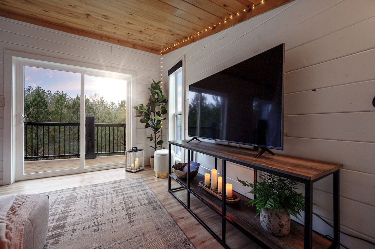 入住 Treetop Reflections 小木屋,在大自然的懷抱中享受浪漫時光。這個舒適的度假屋坐落在高聳的樹木之中,窗望去,景色怡人,讓你沉浸在寧靜中,享受親密時光。我們的小木屋是尋找浪漫度假勝地的情侶的完美選擇,是一個寧靜的天堂,四周環繞著雄偉的森林。