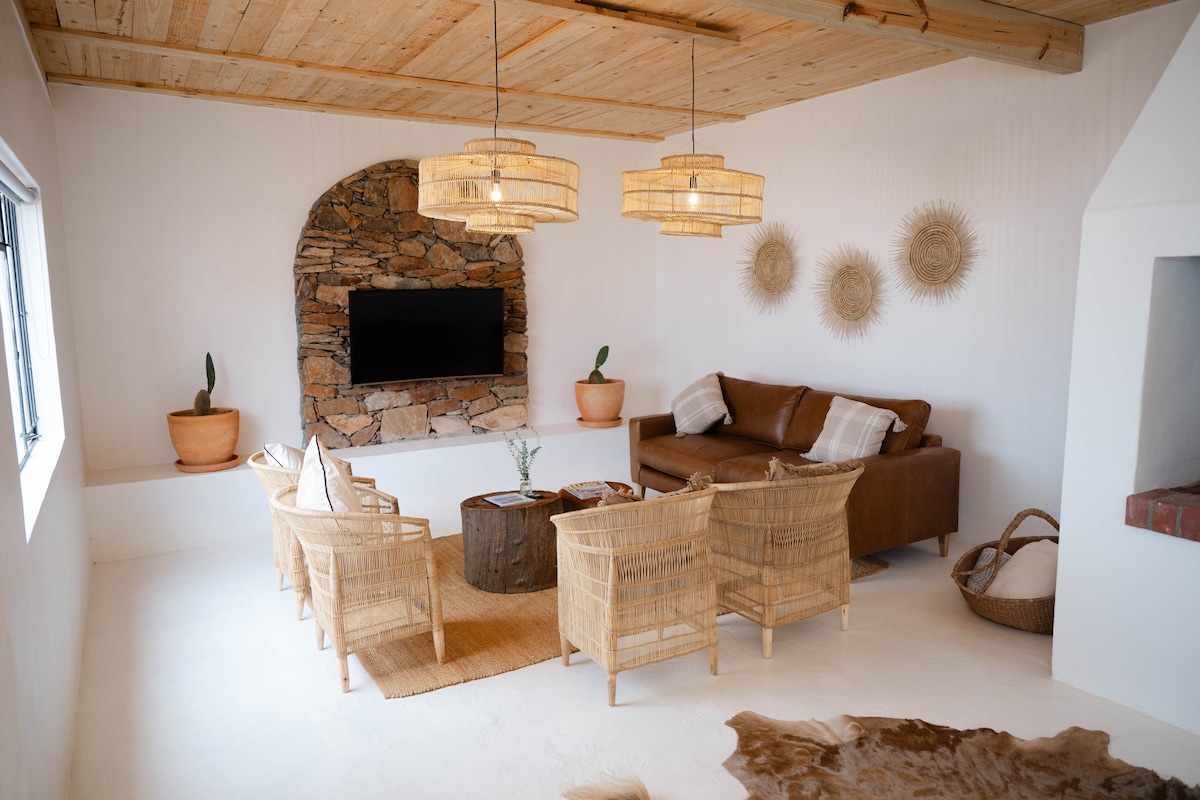 Xairu是San語,意思是「天堂」。Xairu四周環繞著大自然,距離蒙塔古(Montagu)10分鐘車程,名副其實。房源位於一個僅有五棟房屋的私人40公頃生態保護區。如果您正在尋找安靜的地方,那麼這裡就是理想地點。這座美麗的法式茅草屋可欣賞令人驚嘆的湖景和山景,以及從門廊上欣賞的壯麗日出,提供舒適的農場風格生活。位於當地桃子和杏子農田的中心。