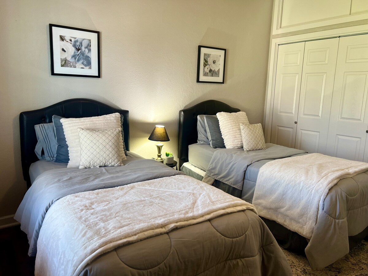 位於市中心!步行15分鐘或開車3分鐘即可抵達市中心和夜生活! 距離35號州際公路不到1.6公里。 房子有2間配有雙人床的臥室、1間浴室和1張雙人拉出式沙發床。 有圍欄的後院有足夠的空間可供遊戲和烤肉。一輛車的有蓋停車位和額外的非有蓋停車位。 市中心: 0.8英里 Schlitterbahn :約1英里 科馬爾河:約1.5英里 德州格魯恩(Gruene):約4英里