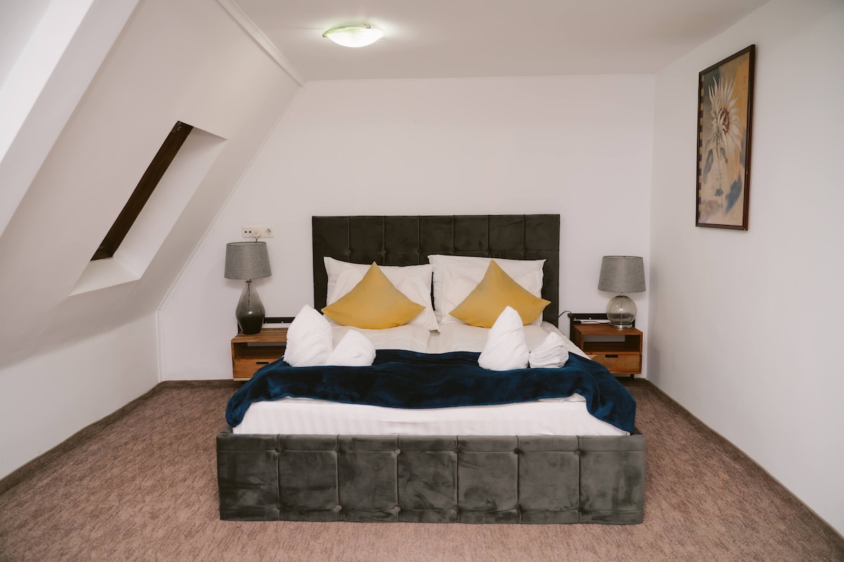 公寓位於市中心,更準確地說,在市政廳後面,步行一分鐘即可抵達超市lidl penny和profi,五分鐘即可抵達中央市場。 空間( 100平方米) 公寓有兩間配有雙人床的睡房、一間配有沙發床的寬敞客廳和兩間配有淋浴間和浴缸的浴室 設備齊全的廚房,配備必要的設備。 旅人可使用廚房、浴室、露台和更衣室。 公寓位於新翻修的大樓一樓。