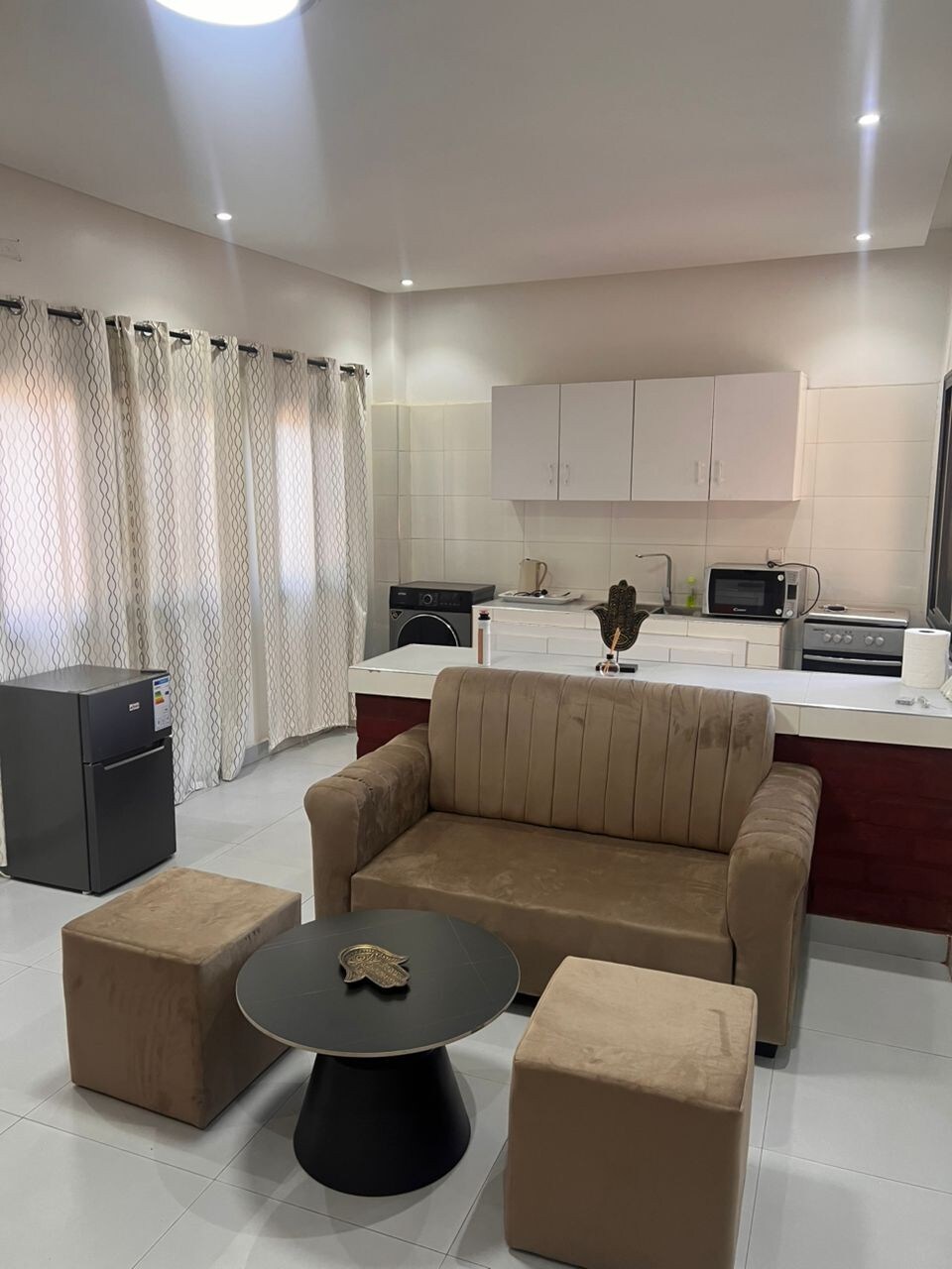 Profitez d'un logement propre et à 2 pas de la corniche. Mini-studio équipé d’une cuisine américaine, avec plaque électrique bouilloire et tous les ustensiles pour cuisiner. Situé en face de l’hôpital Elizabeth Diouf de Gueule Tapee, proche de tous commerces (Casino Sahm), (Terrou -bi) et (Marché Soumbedioune). L’immeuble est très sécurisé avec caméra et porte blindée. Vous bénéficiez d’une wifi gratuite. Électricité à la charge du client Compteur Woyofal rechargeable.