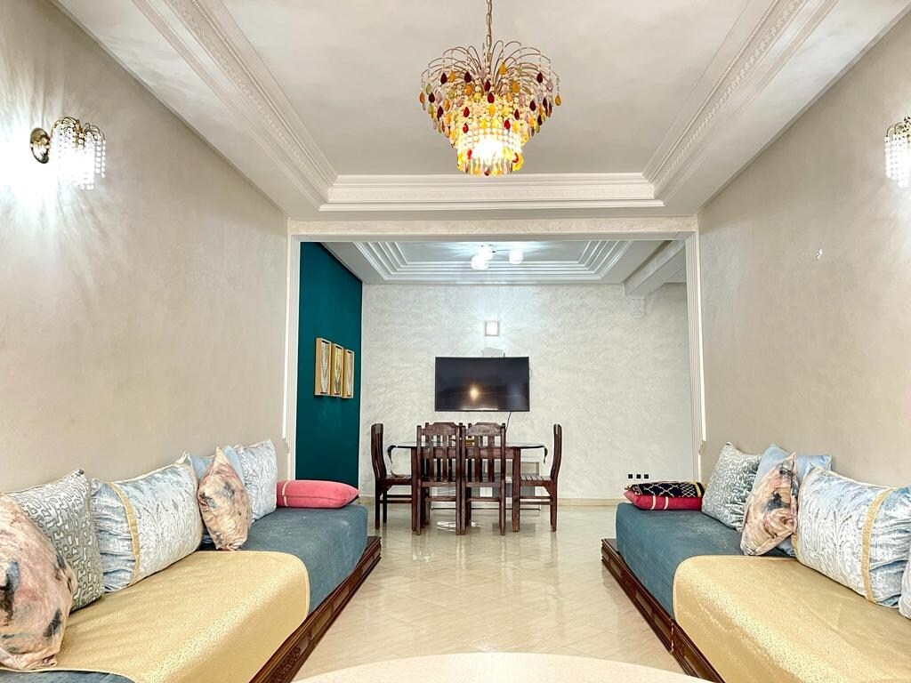 設備齊全的公寓,一切都井然有序,非常乾淨,讓您感到非常舒適,附近有商店、理髮店和餐廳以及您需要的一切,地理位置非常好,它位於通往Médiouna的路上,距離卡薩布蘭卡市中心10分鐘,距離Mohamad機場20分鐘5. 我希望能趕快見到你,並希望您在我的公寓裡度過愉快的體驗