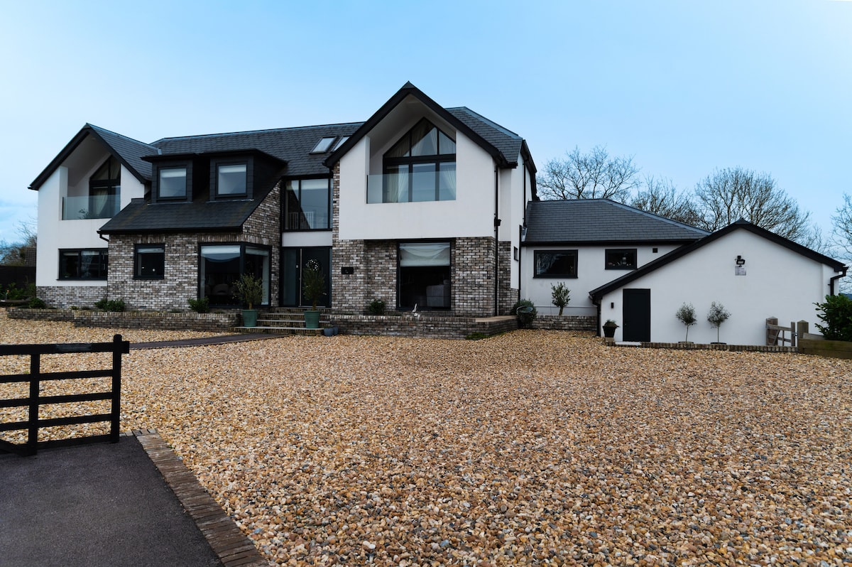 寬敞豪華的5間臥室,所有套房—非常適合家庭、團體和婚禮住宿,包括一間超級特大床主臥室,配有步入式更衣室和全套浴室、2間特大床房和2間雙人房。 明亮的開放式客廳、大廚房、餐廳和公用設施。 電影院、健身房、辦公室和遊戲室。 地暖和空調。 安靜的越野環境,可停放10輛車,靠近查爾斯·狄更斯( Charles Dickens )的家園加德山莊( Gad 's Hill Place )。 時尚、私密,是難忘住宿的完美選擇。