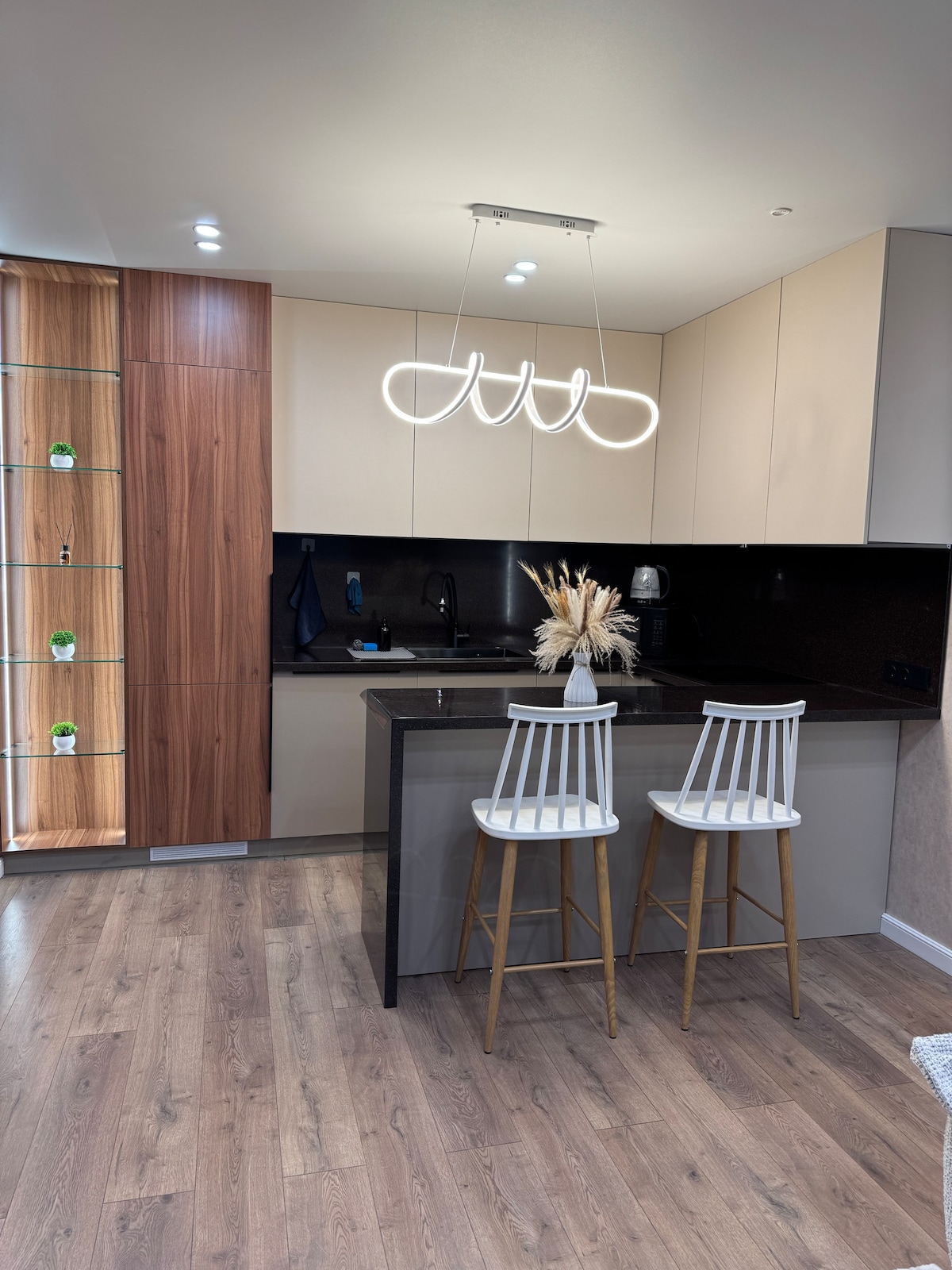 入住時尚的Charm公寓,享受設計師翻新和真正舒適的氛圍。 優雅、簡約、現代科技和寧靜奢華的結合。 等候您: -設備齊全的小廚房 -配有梳化和舒適照明的休息區 睡眠區域由玻璃隔板隔開,最大限度地提高舒適度和私隱度 - 精彩的燈光設計,營造溫馨而寧靜的氛圍。 公寓位於阿拉木圖市中心的新住宅區