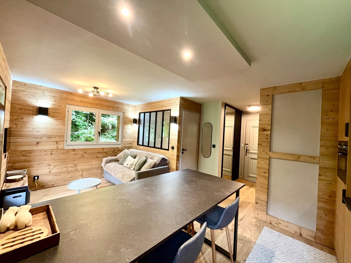 享受村莊中心溫馨寧靜的住宿。 地理位置優越,位於教堂和鋪砌小巷的腳下。距離羚羊纜車 (Télécabine du Chamois) 僅 100 公尺。 公寓具有現代小木屋的外觀。全面裝飾為舊木材和花崗岩。寬敞的客廳。客廳內有沙發床。開放式廚房,配有整體式家具。臥室配有一張加大雙人床,可通往一個巨大的玻璃工作室。帶淋浴間的浴室。獨立廁所。 禮賓接待。