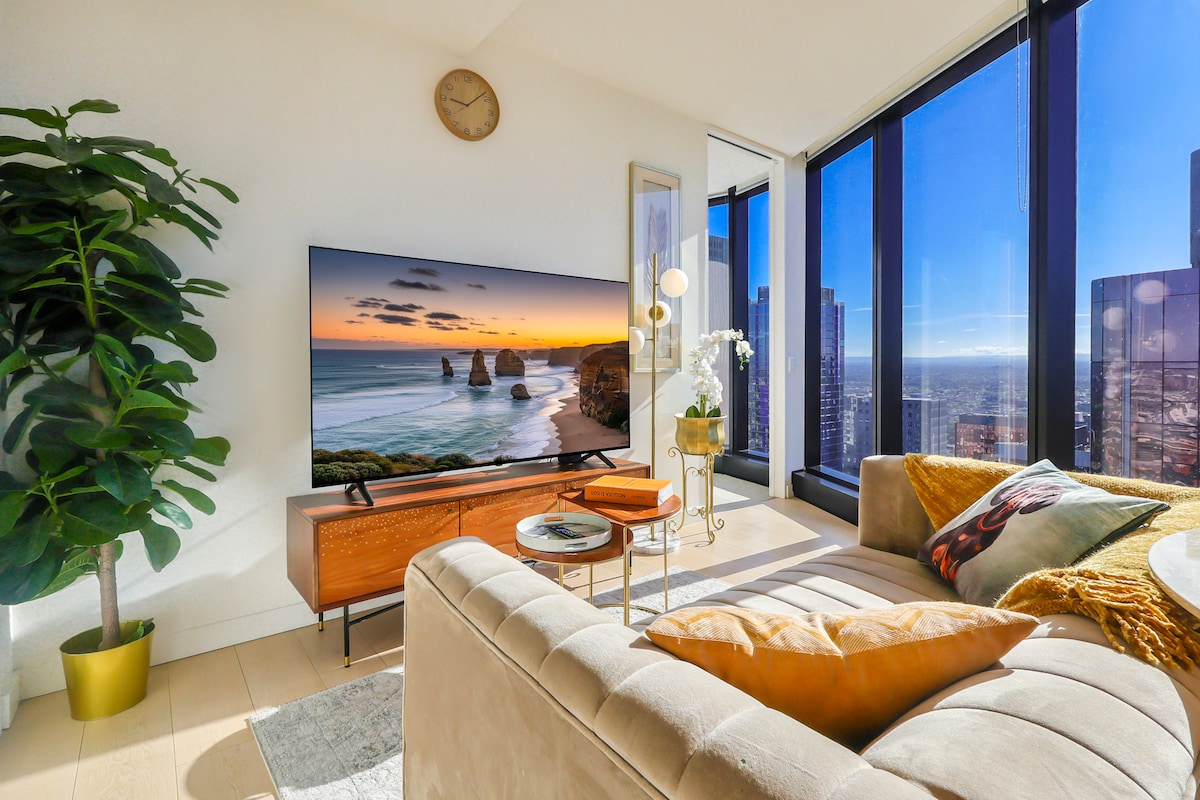 **黃金城市位置** 🌆 - 黃金地段(免費電車區內),63樓可欣賞城市天際線美景🏙️ -現代時尚的室內裝潢,配備精心挑選的設備與服務 🛋️✨ -輕鬆前往熱門景點、餐廳和娛樂場所 🎡🍴🎭 -世界一流的設施:游泳池、健身房 🏊♂️🏋️♀️🛋️ -非常適合商務和休閒旅客 ✈️🏢 - 高標準衛生 🧼🧹 體驗墨爾本市中心無與倫比的舒適與便利。