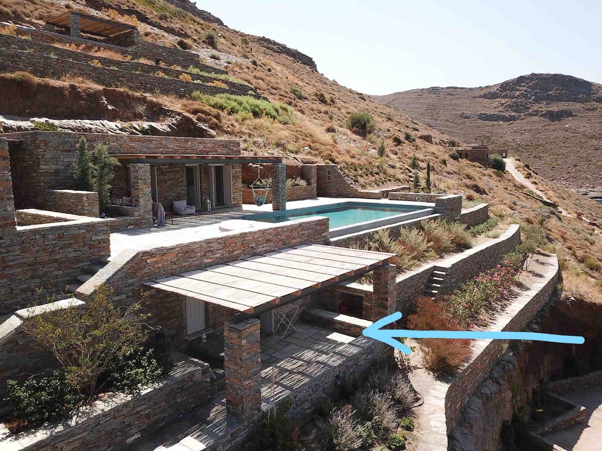 Kydippi是用石頭建造的,看起來彷彿在山坡上攀爬,為放鬆和寧靜創造了條件。 優雅、獨特的室內和室外空間為您提供充足的待客之道和舒適。 靠近島上國際化的景點,但遠離人羣,邀請你創造自己的回憶。